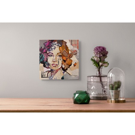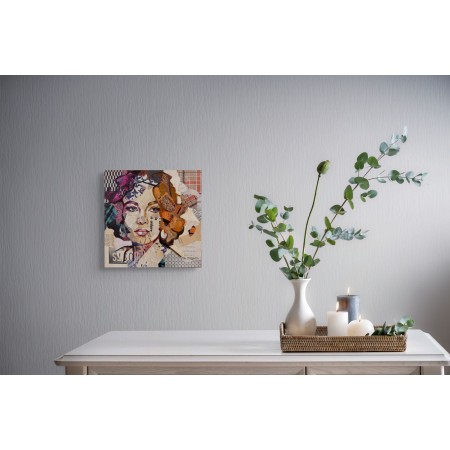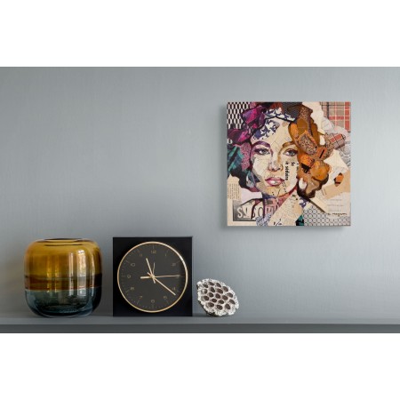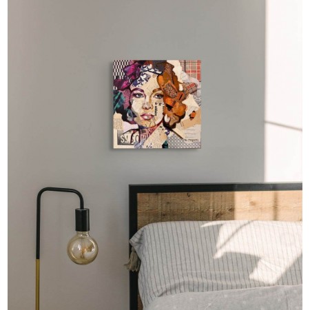 Originalkunstwerk von Carme Magem, collagistische Künstlerin, bekannt für seine bemerkenswert ausdrucksstarken Porträts, komponiert aus Zeitungsausschnitten und Fragmenten alter Briefe und Schriften.