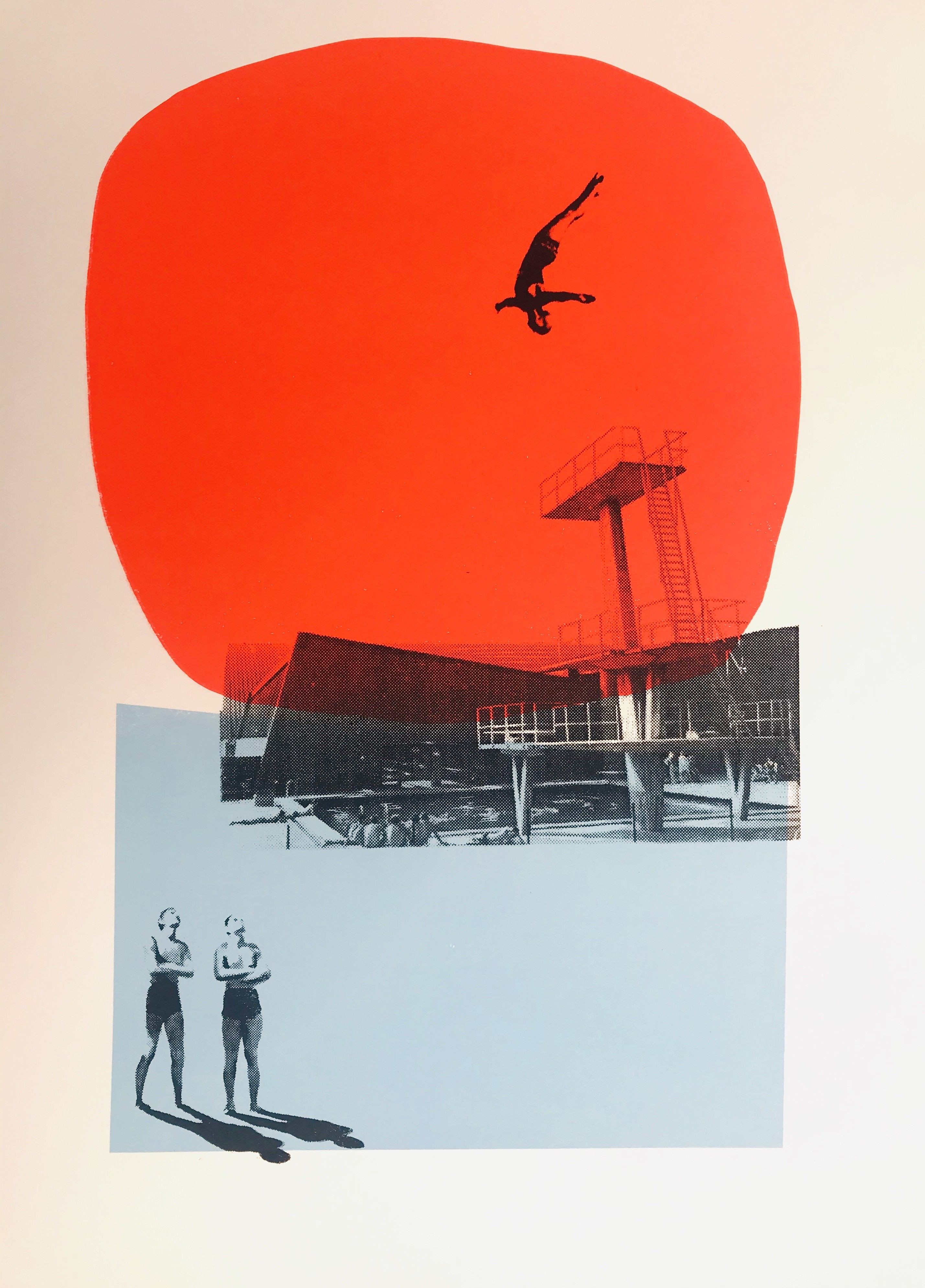 Originalarbeit der Künstlerin Valérie Bétoulaud, deren Forschungsschwerpunkt der Ausdruck harmonischer Körper bei Outdoor-Aktivitäten und Sportarten ist.