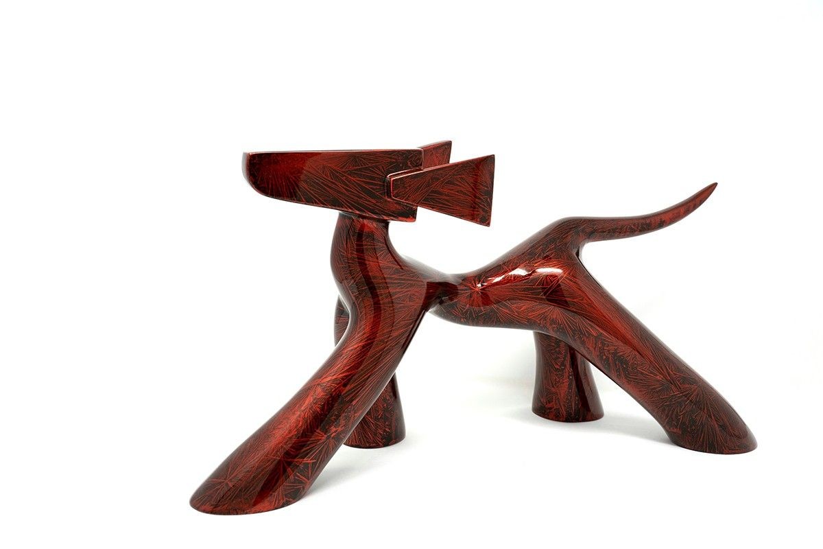 Vollharzskulptur in roter Farbe.