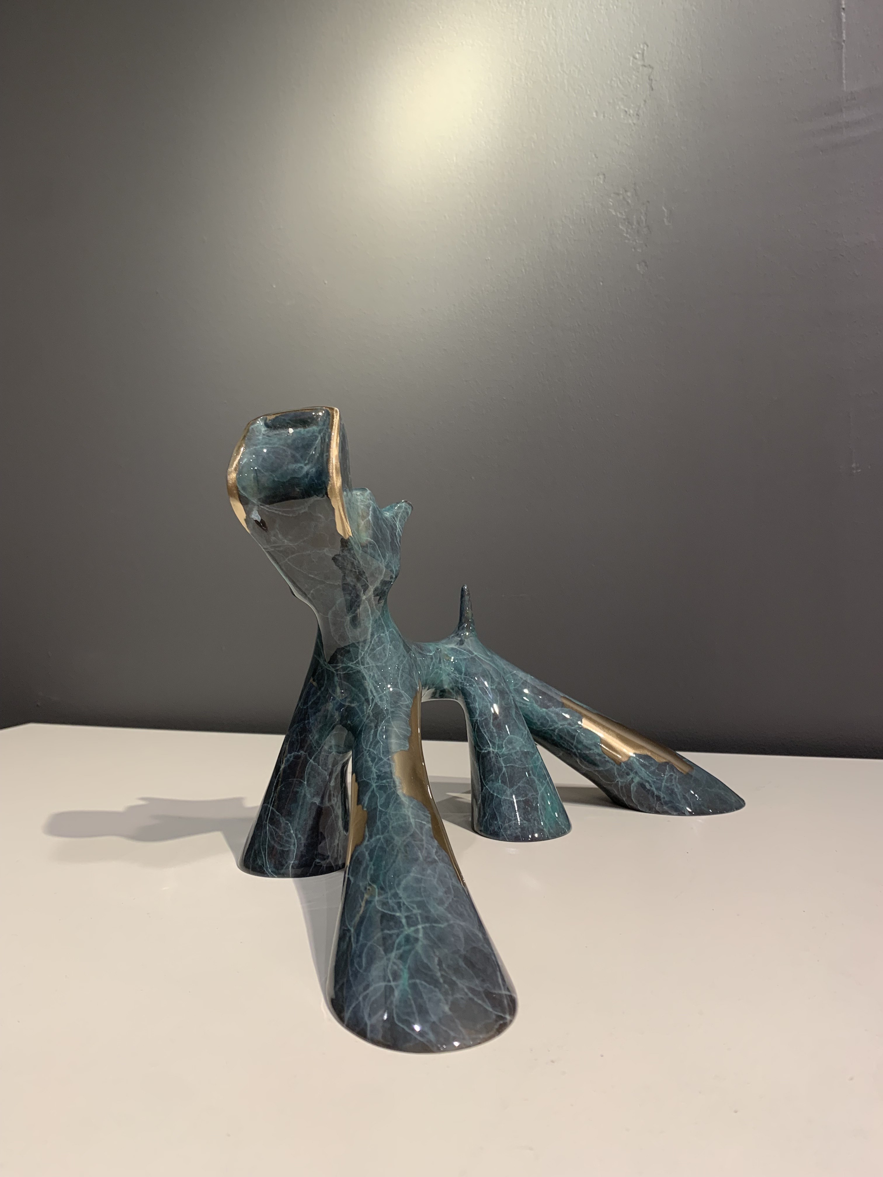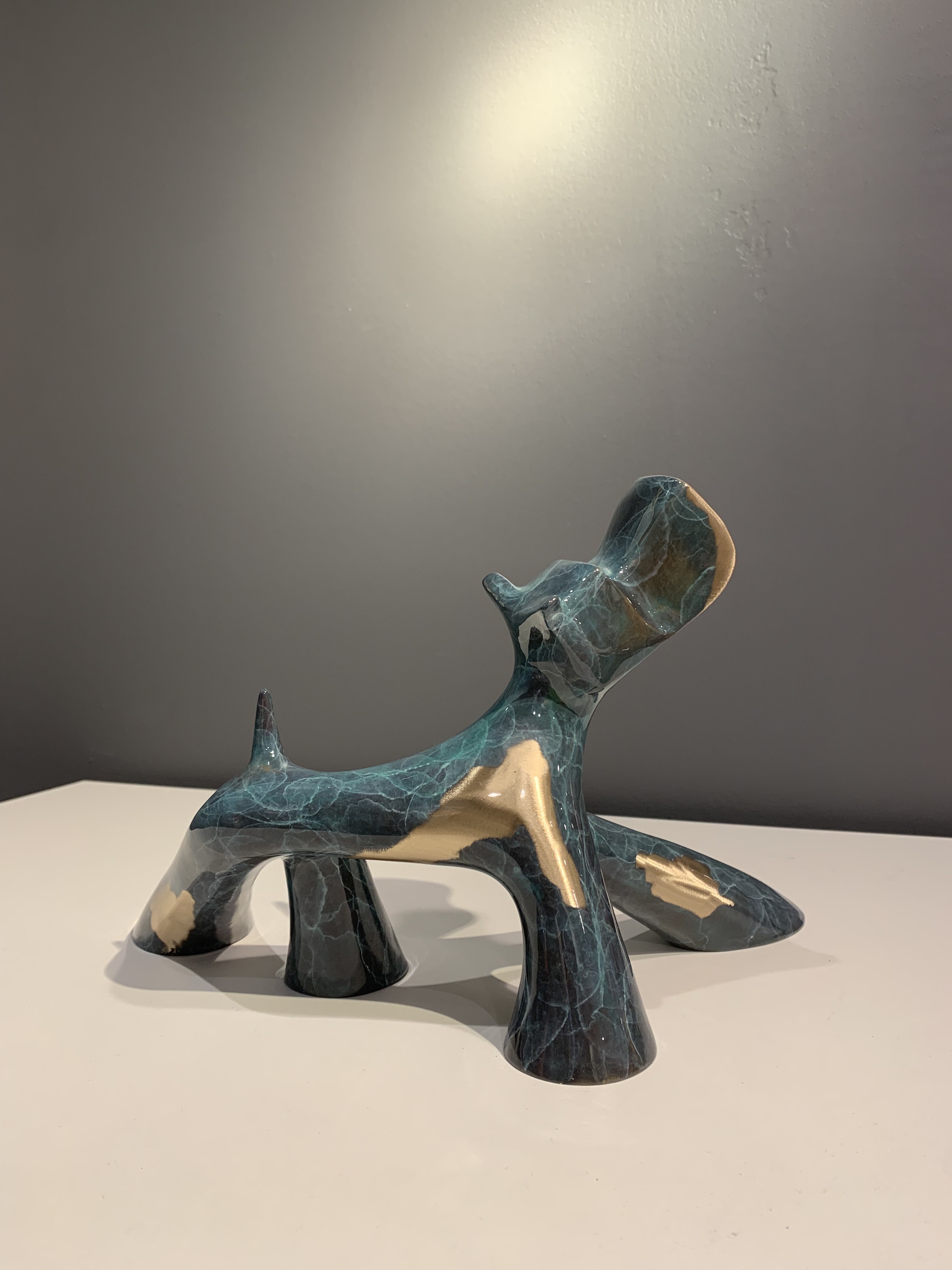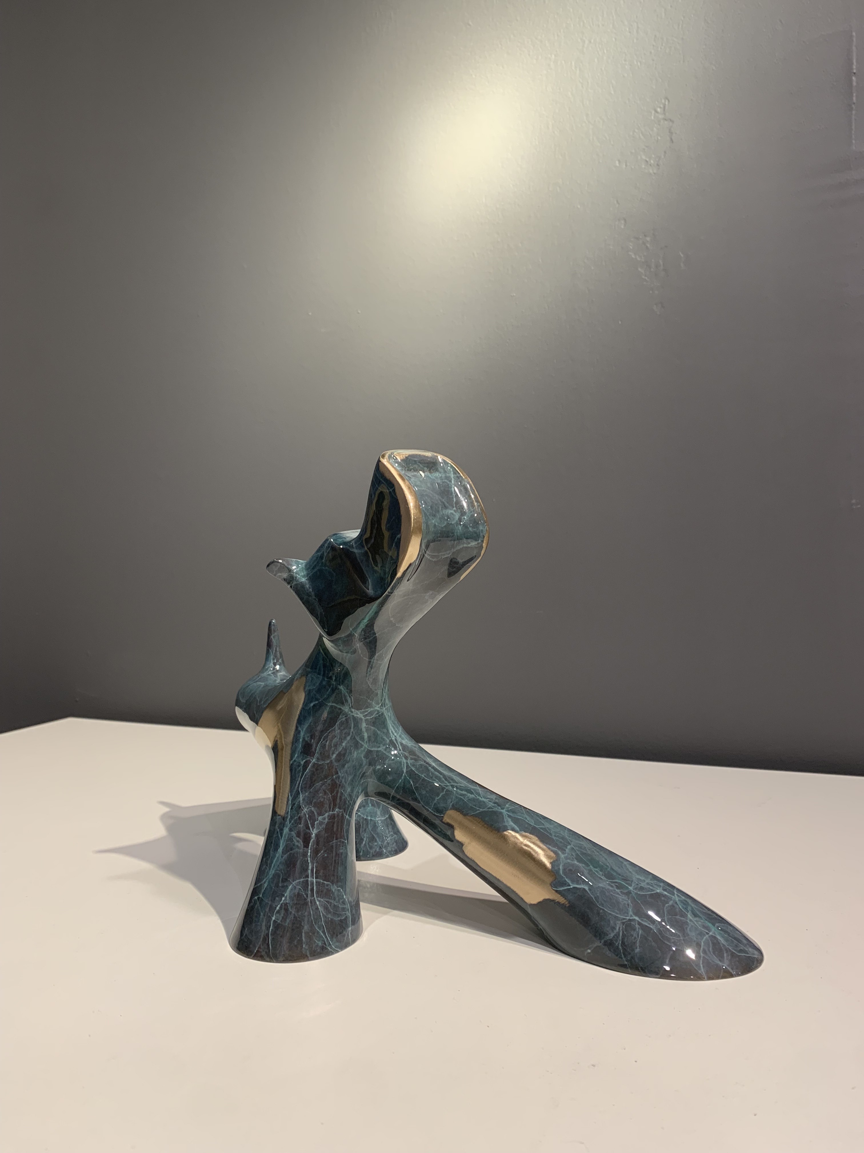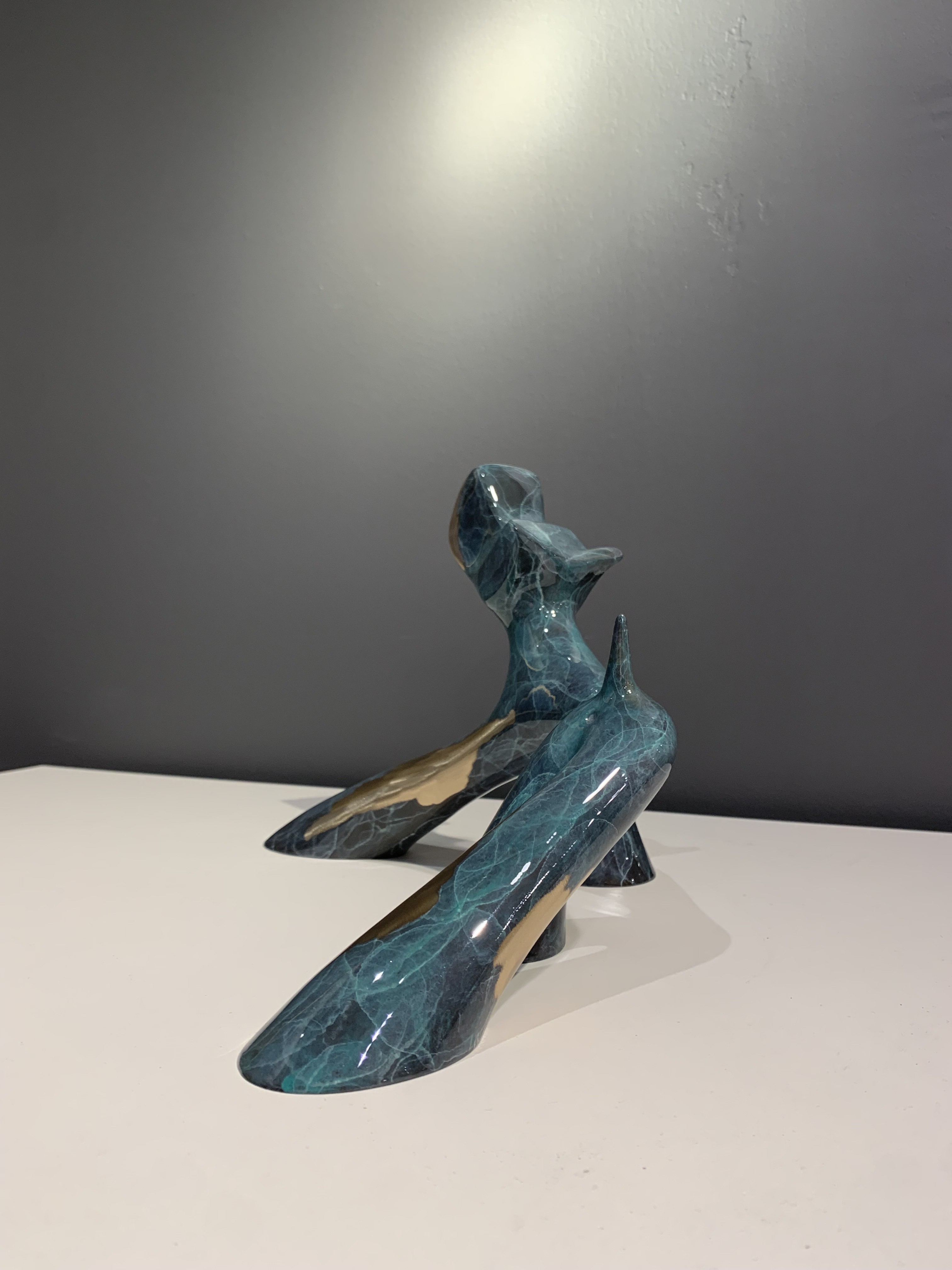 Skulptur aus grün marmorierter Bronze, geschliffen und glänzend lackiert.Nummeriert 6/8.35 x 60 x 22 cm