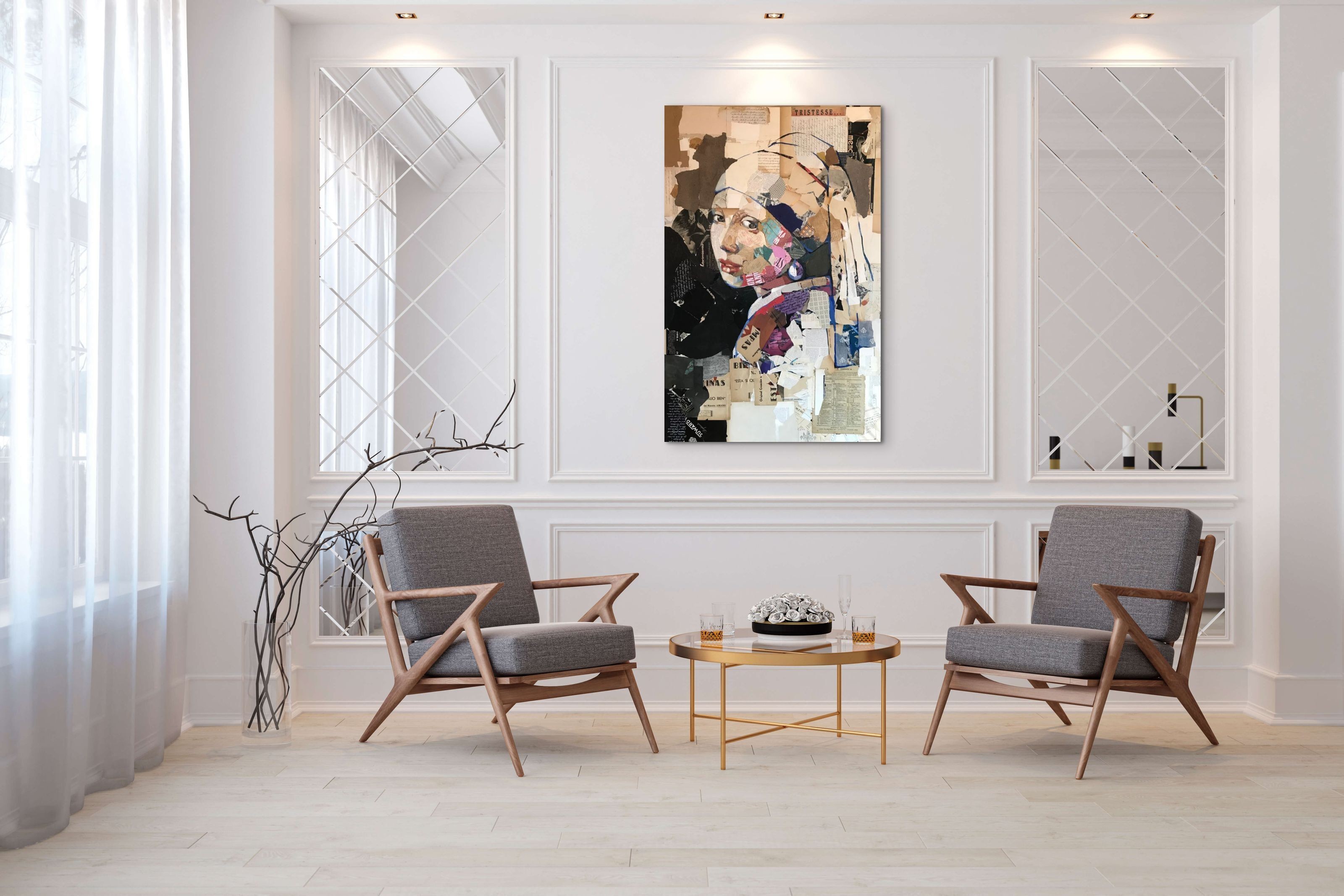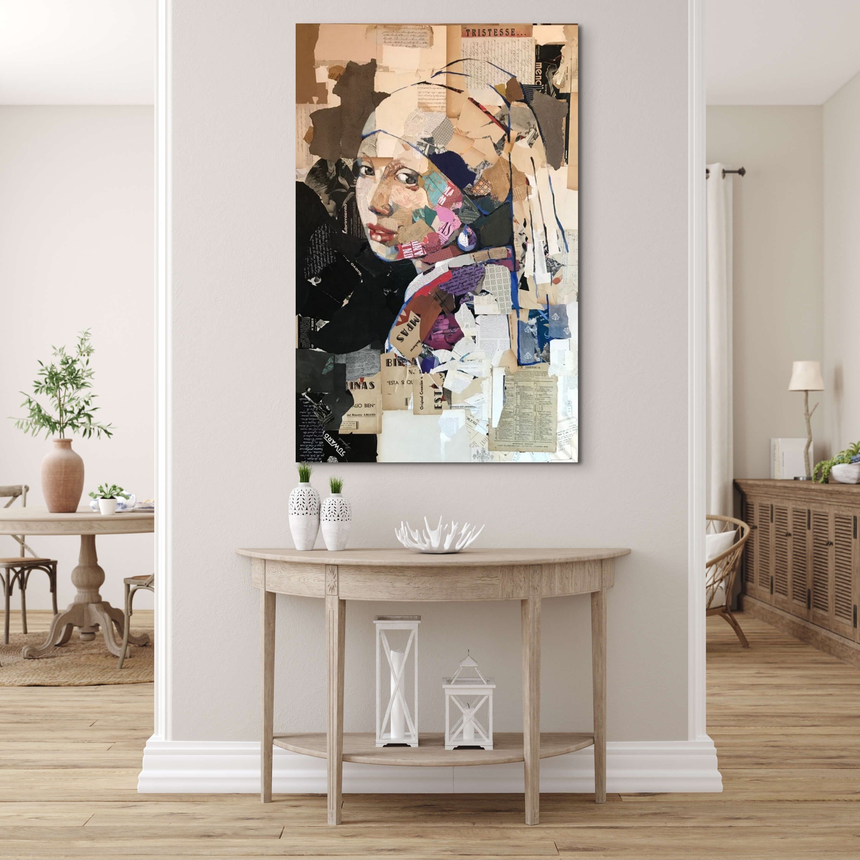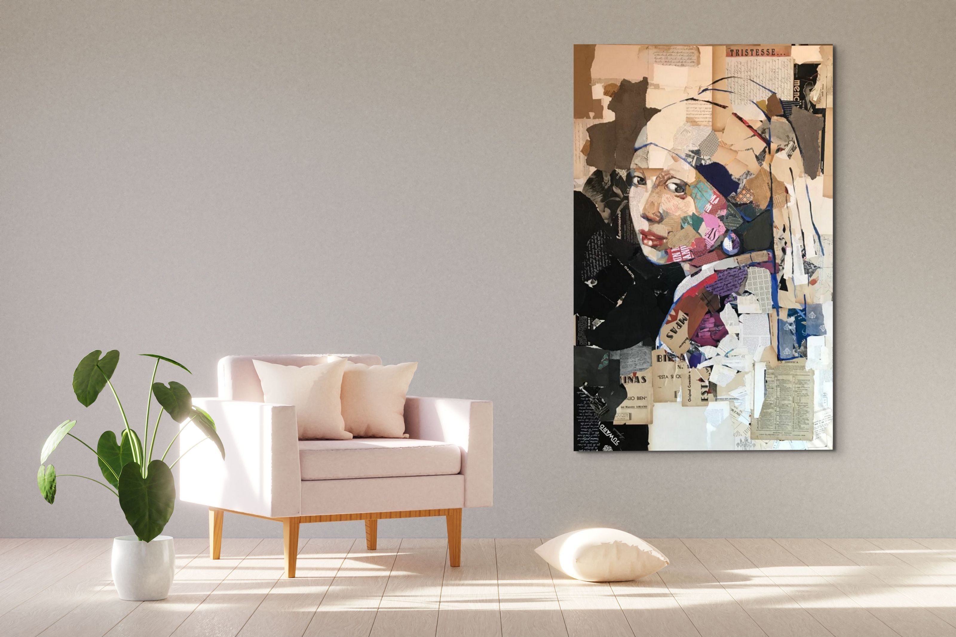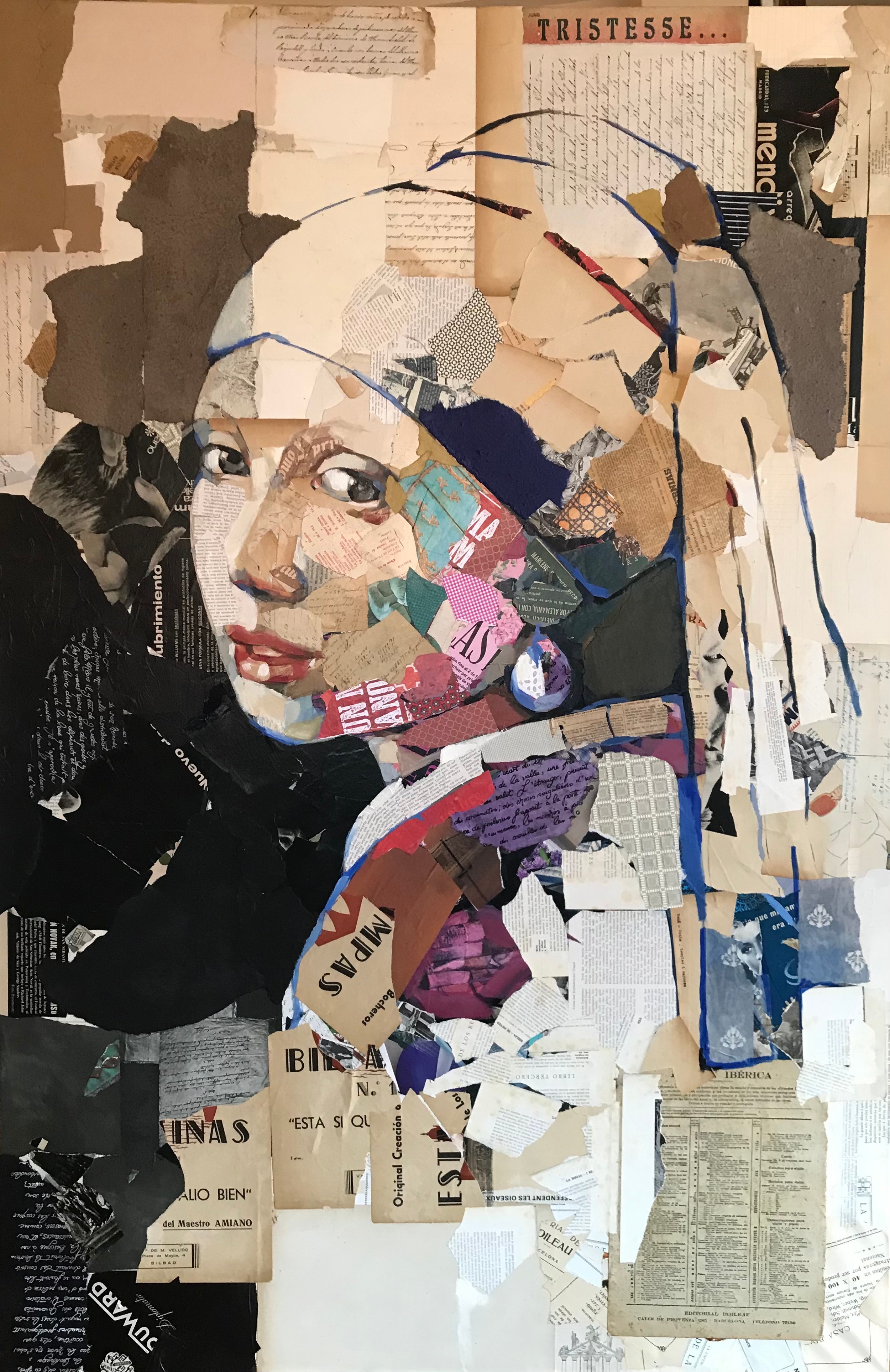 Original artwork by Carme Magem, collagist artist known for his remarkably expressive portraits, composed with newspaper clippings and fragments of old letters and writings. .