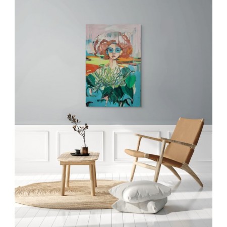 Obra original de la artista GOLNAZ AFRAZ, que explora temas de la vida cotidiana y la condición femenina.