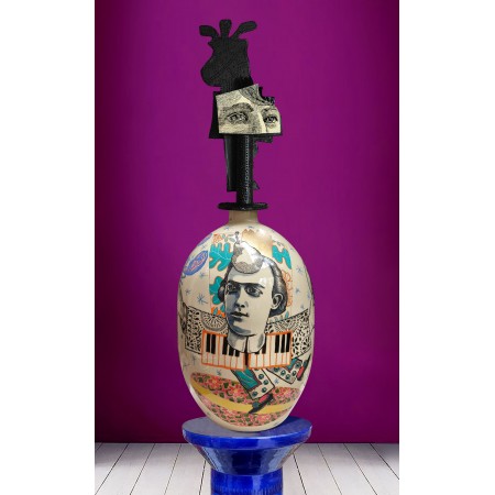 Cerámica original del artista Elia Pagliarino, realizada en doble cocción de Erik Satie, compositor minimalista y extravagante (autor de «Gymnopédies» y «Gnossiennes»), vivió recluido, con el corazón roto por su única relación amorosa. Vanguardista y bromista, fue compañero de los dadaístas y compuso el escandaloso ballet «Parade». Sus partituras, a menudo anotadas con humor, revelan una melancolía constante.