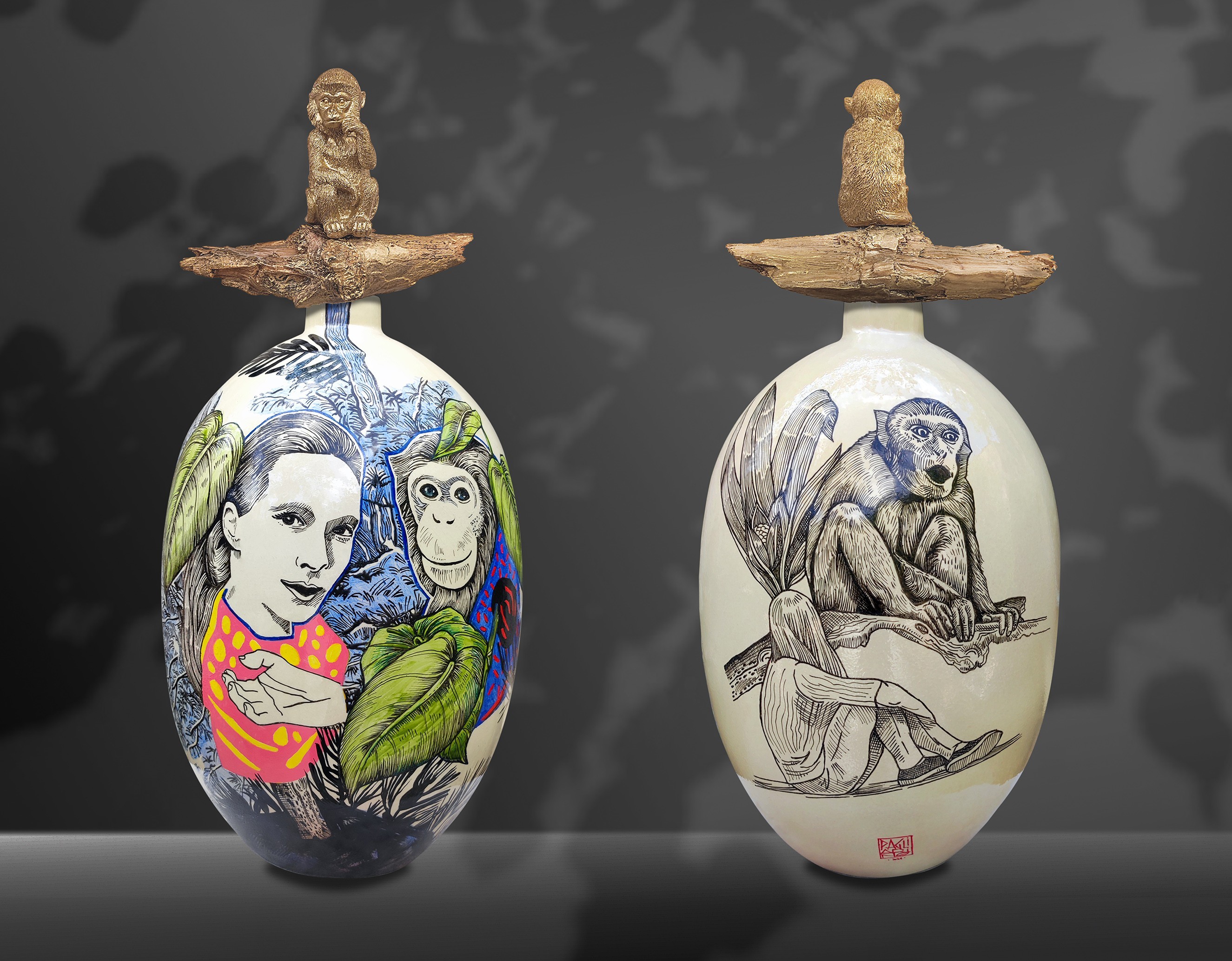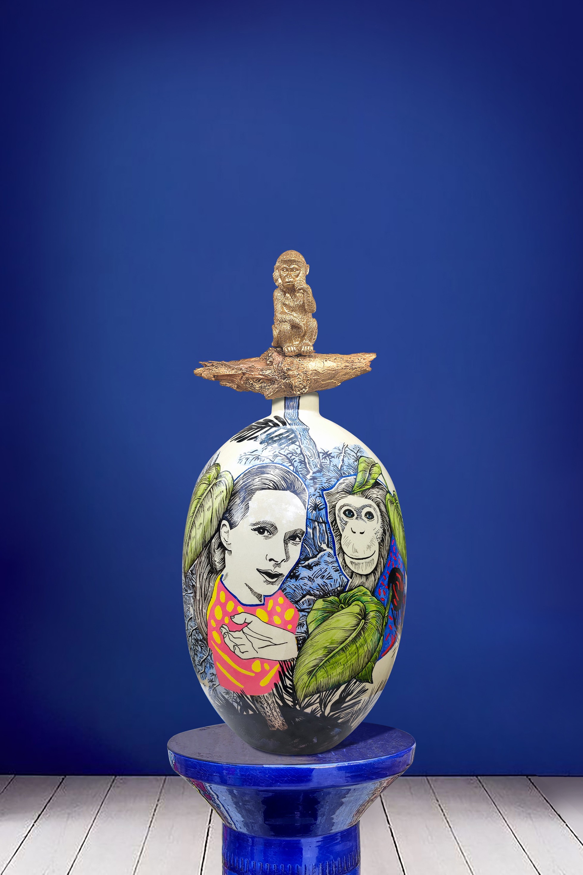 Céramique originale de l'artiste Elia Pagliarino, dont le travail est souvent caractérisé par des formes au caractère ethnique ou rétro. Son intérêt pour l'anthropologie et les représentations venues d'Océanie donne un caractère tout à fait singulier à ses figurations imaginaires.