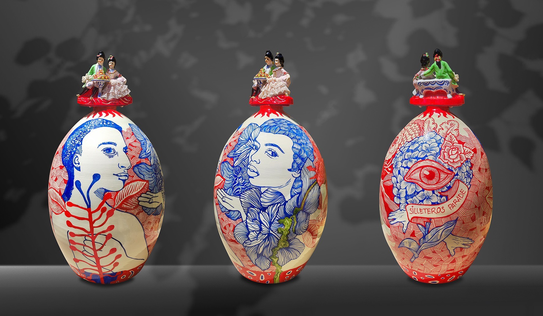 Œuvre originale de l'artiste Elia Pagliarino,réalisée en double cuisson, se distingue par ses teintes rouge et bleu éclatantes. Inspirée de la tradition des silleteros de Medellín, elle raconte l’histoire de Jose et de sa silleta héritée, portant à la fois des fleurs et des récits familiaux.