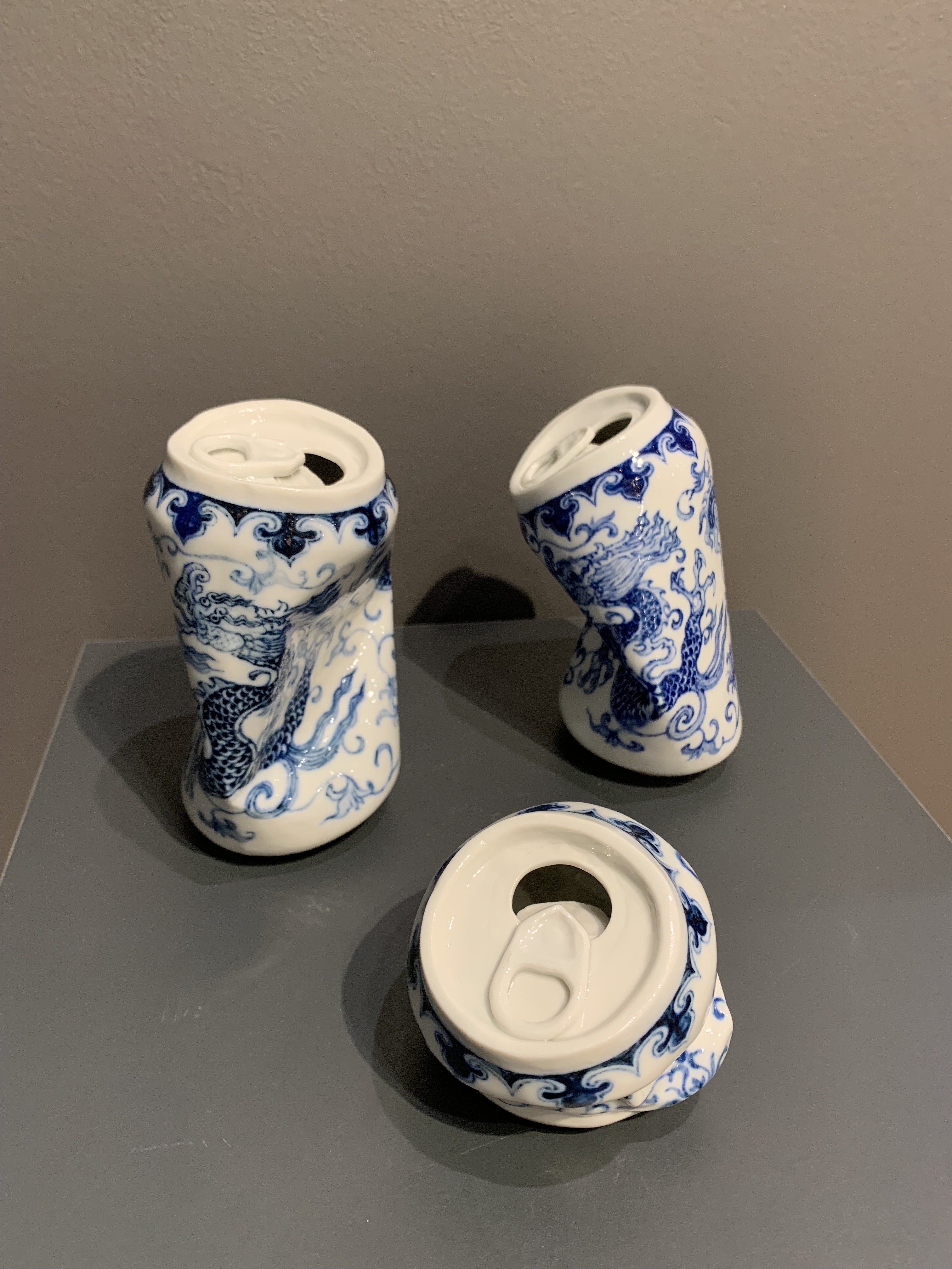 Lei Xue est un artiste chinois multidisciplinaire — sculpteur, peintre, photographe et artiste vidéo — dont la série Drinking Tea, lancée au début des années 2000, détourne des canettes écrasées en porcelaine inspirée de l’esthétique Ming.