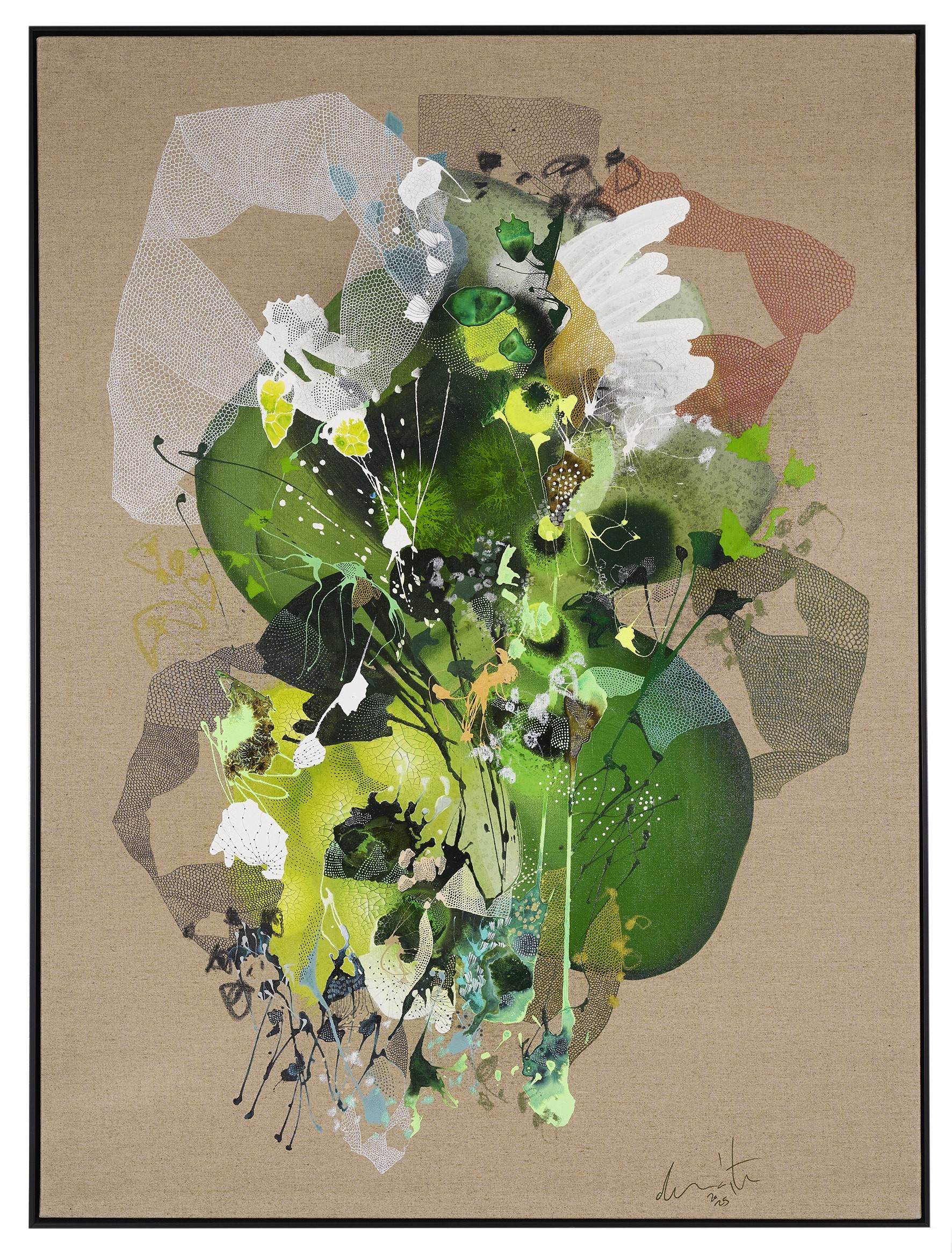 Acrylique, encre, aérosol, pastel et techniques mixte sur châssis toile