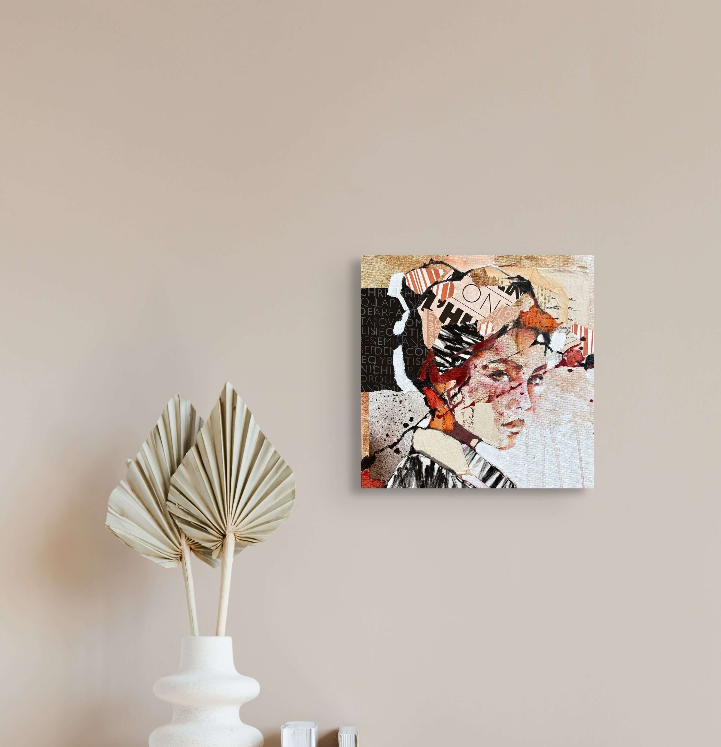 Œuvre originale de l'artiste Carme Magem, ou à travers un visage fragmenté, l’artiste interroge l’identité. Dans des teintes marronnées, enrichies de motifs et de textures, elle compose une œuvre à la résonance poétique.