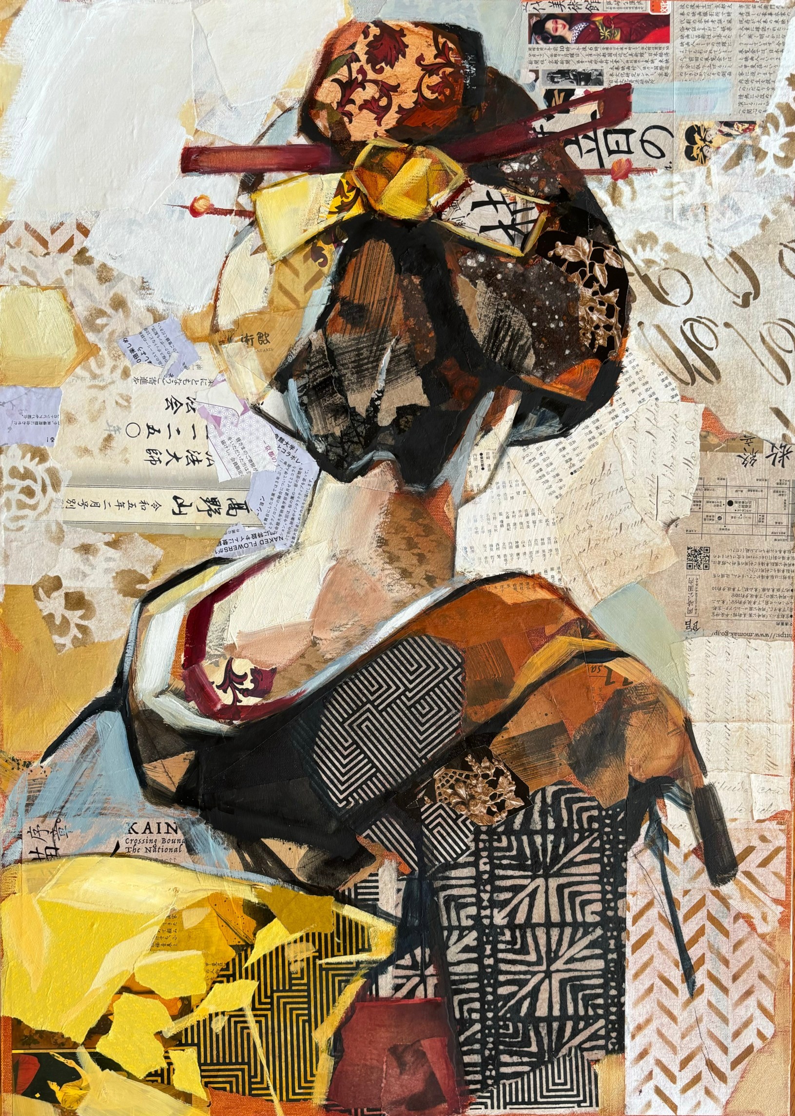 Mix media avec collages sur toile.