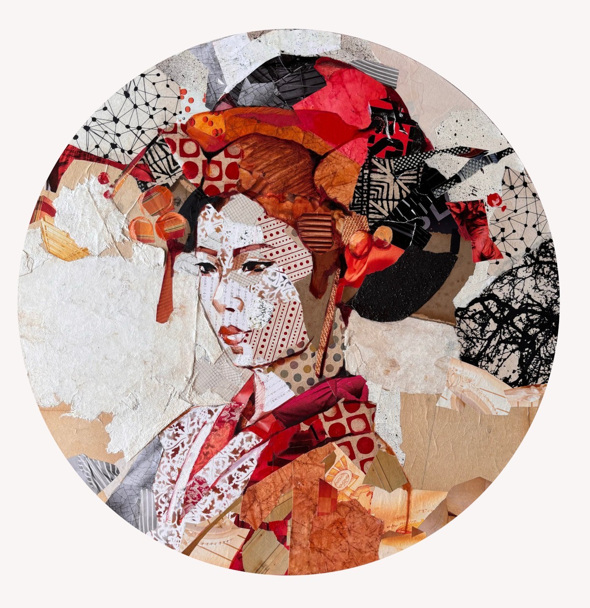 Mix media avec collages sur toile.