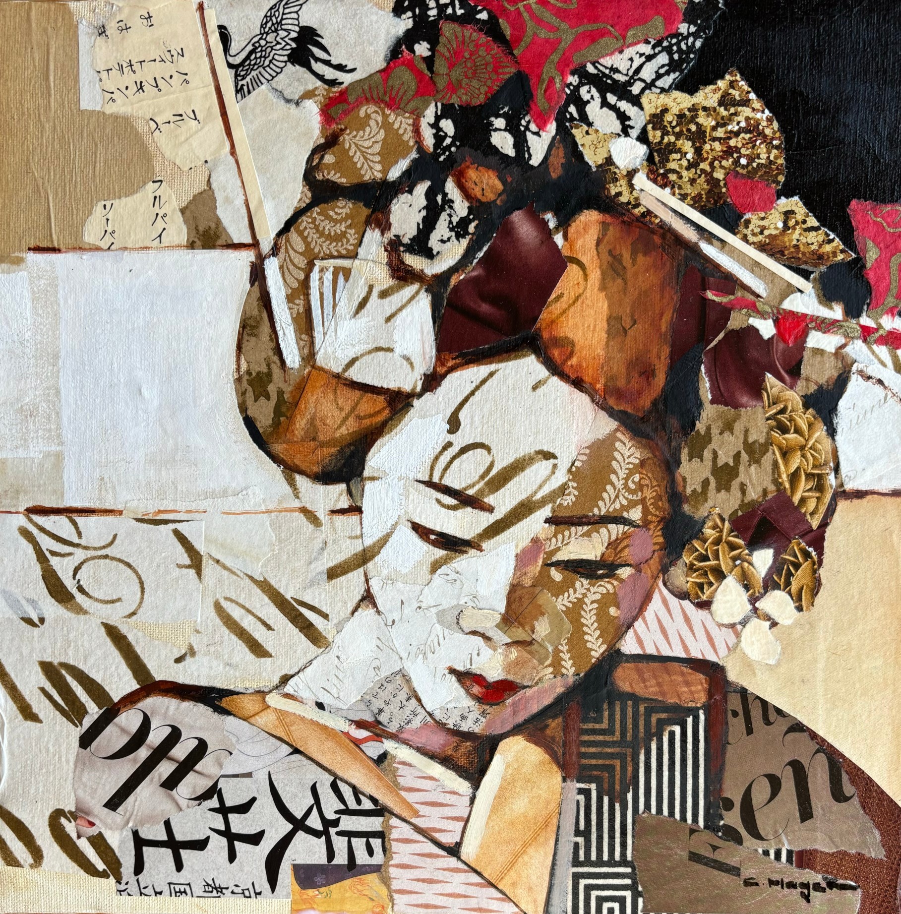 Mix media avec collages sur toile.