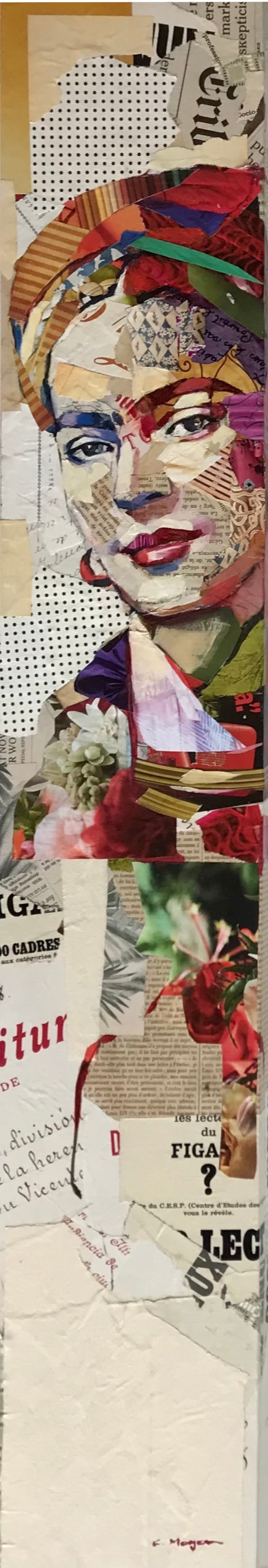 Œuvre originale de  Carme Magem, artiste collagiste reconnue pour ses portraits remarquablement expressifs, composés avec des coupures de journaux et des fragment de lettres et d'écrits anciens.