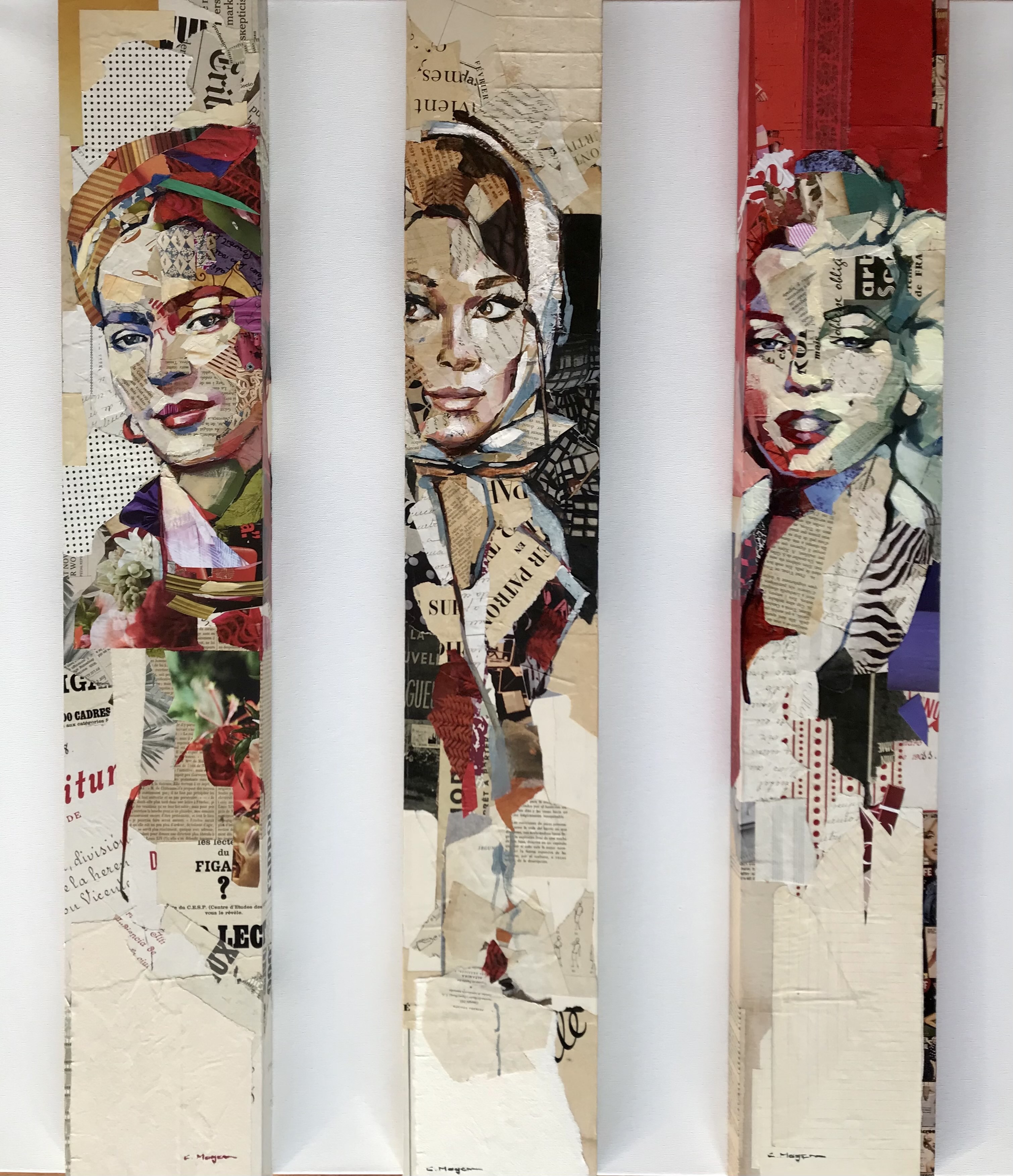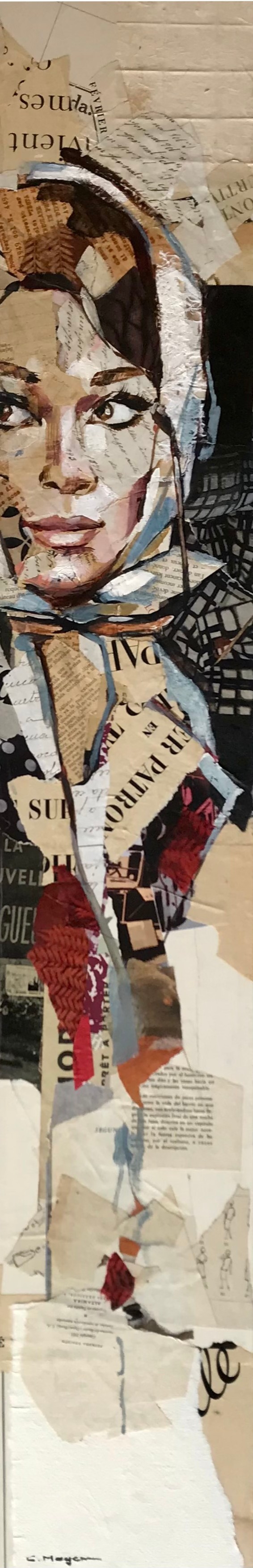 Œuvre originale de  Carme Magem, artiste collagiste reconnue pour ses portraits remarquablement expressifs, composés avec des coupures de journaux et des fragment de lettres et d'écrits anciens.