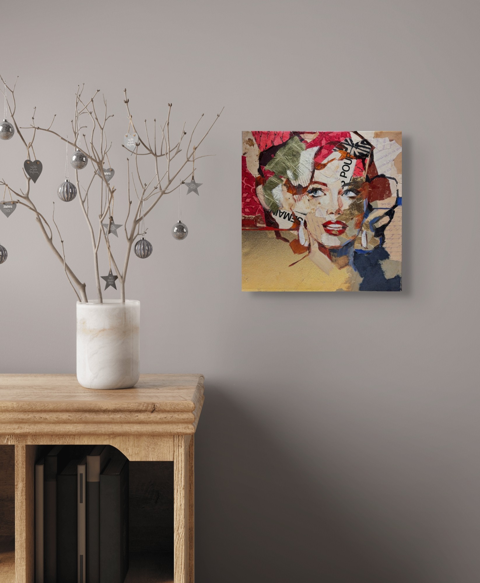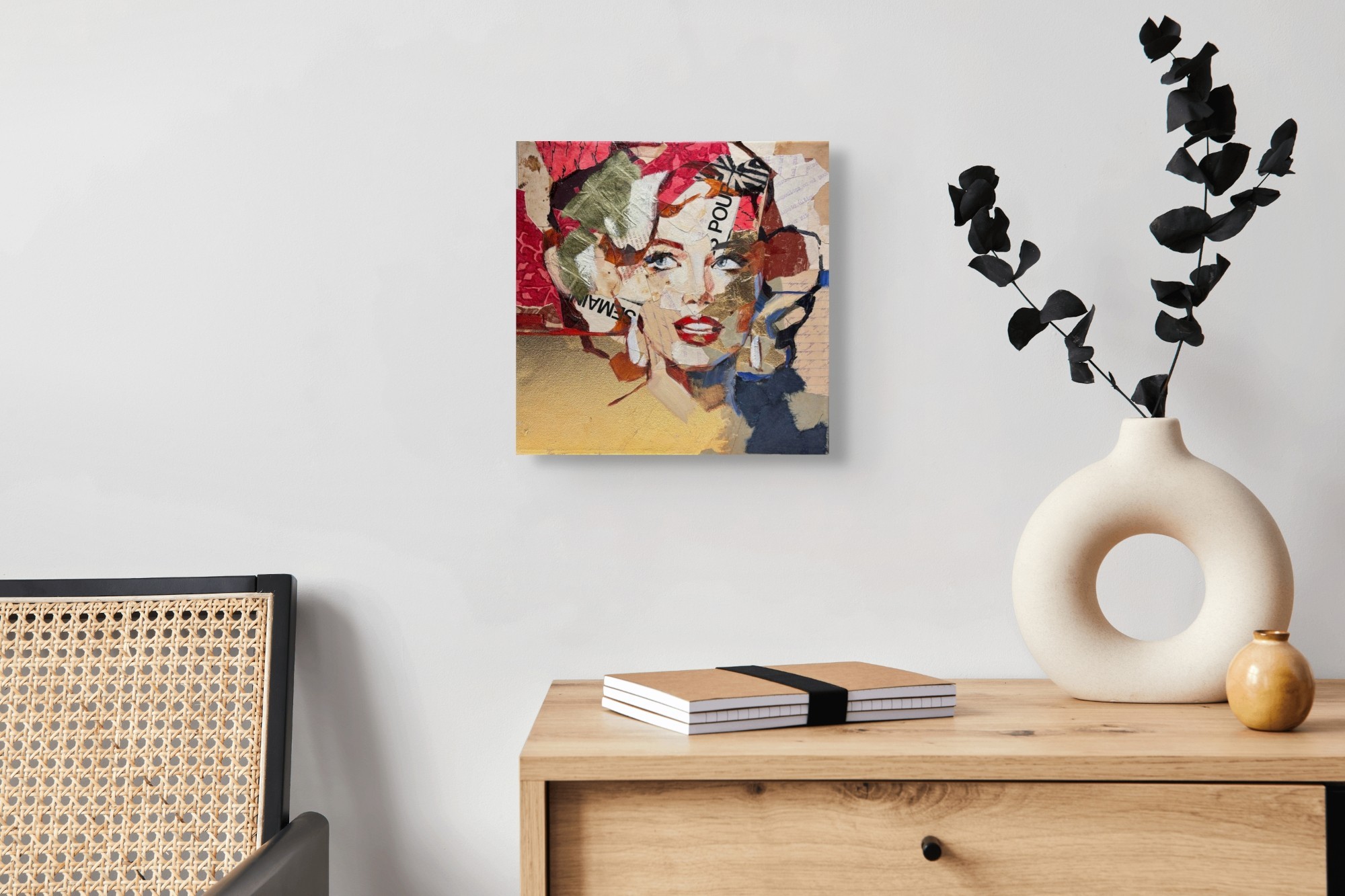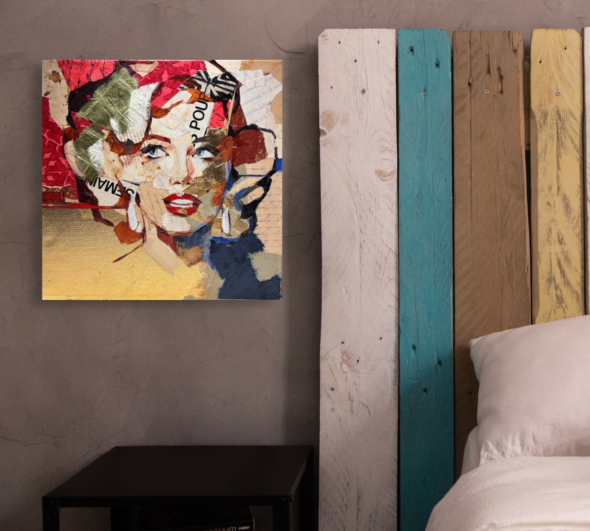 Œuvre originale de l'artiste Carme Magem,une superbe réinterprétation artistique de Marilyn Monroe, l’icône intemporelle du cinéma. À travers une technique mêlant collage et peinture, l’artiste parvient à capturer l’aura fascinante et le charisme légendaire de la star.