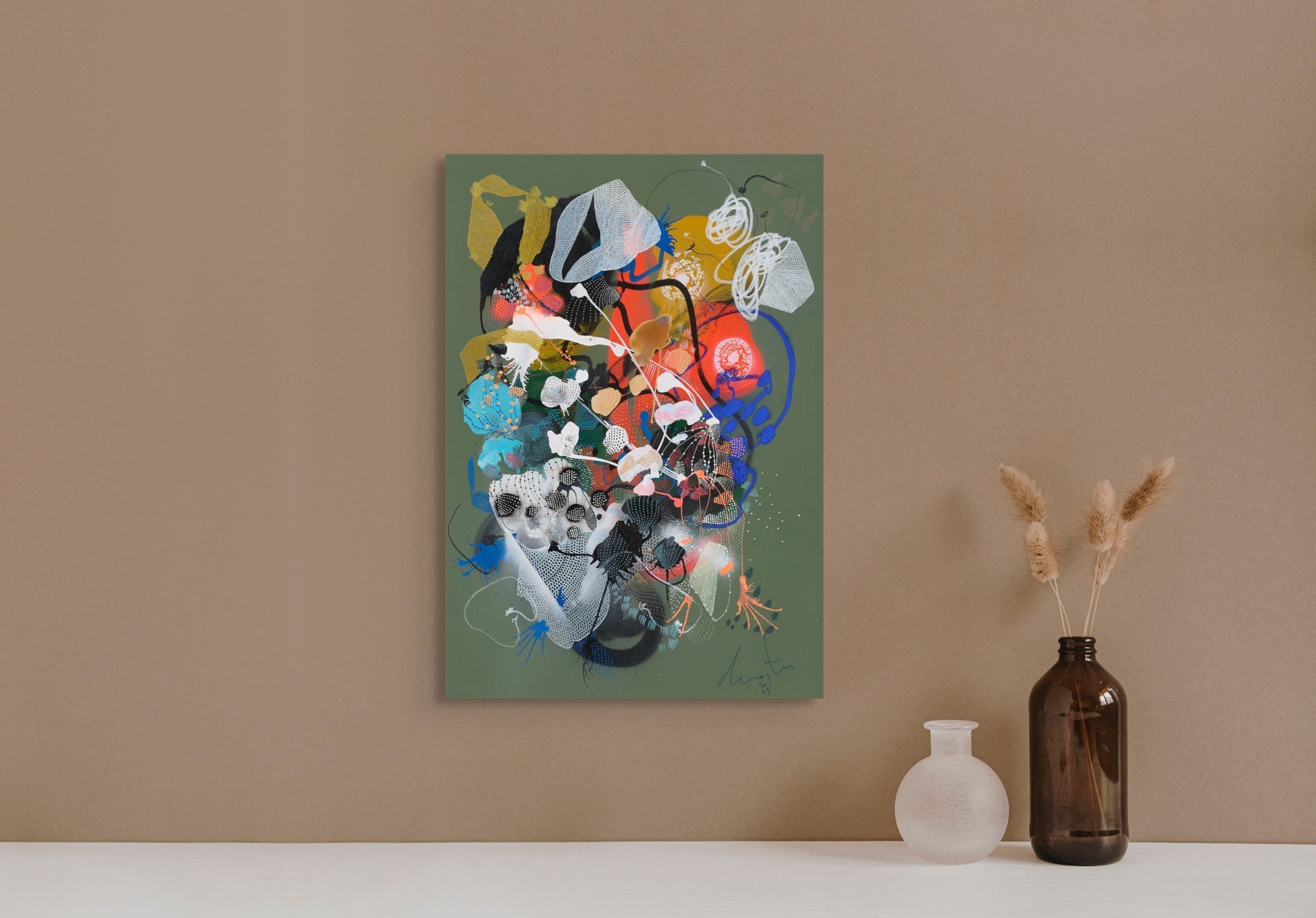 Œuvre originale de l'artiste Damien Demaiter, peintre coloriste dont le travail explore la poésie des formes organiques à travers une approche intuitive et vibrante.