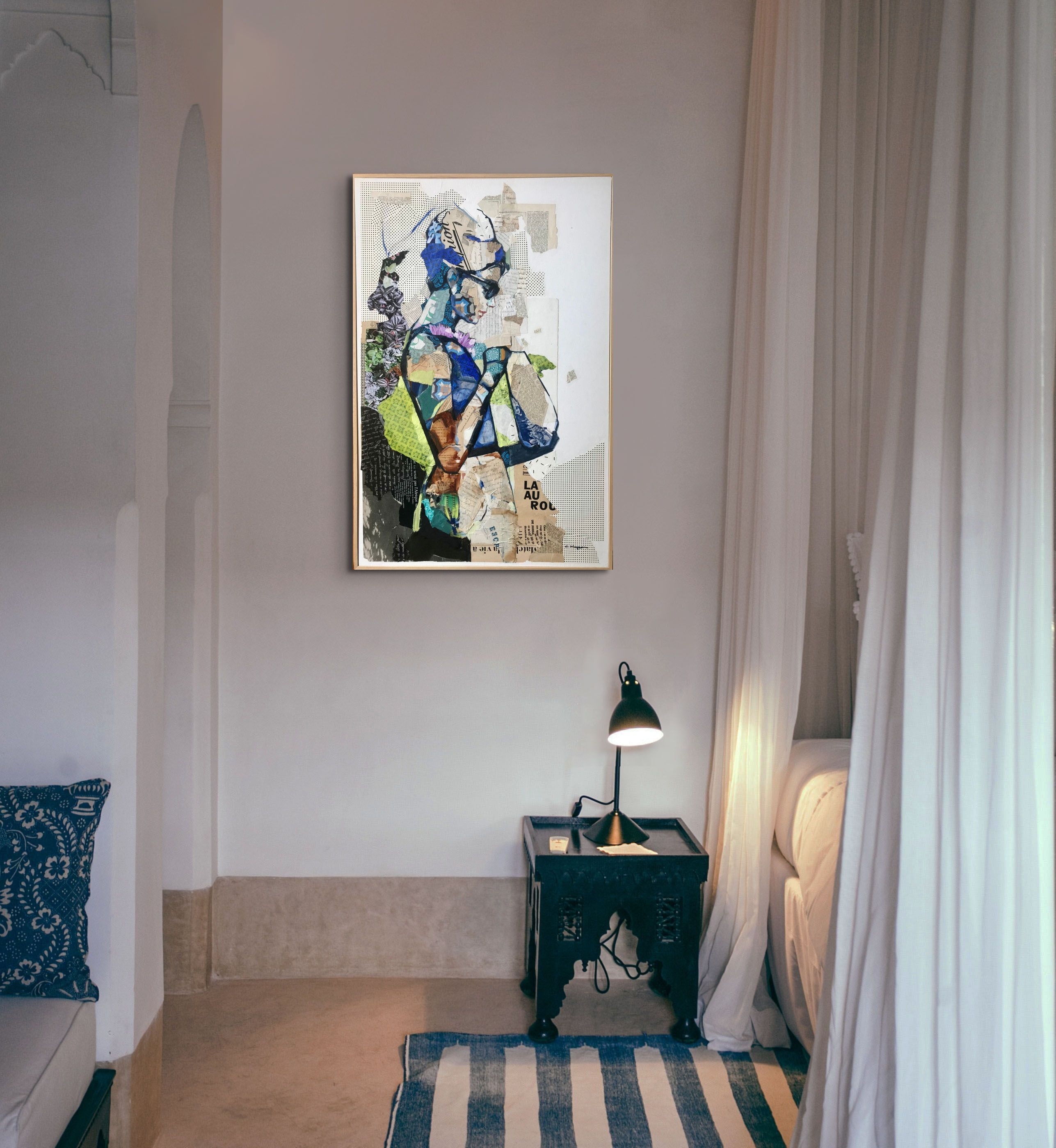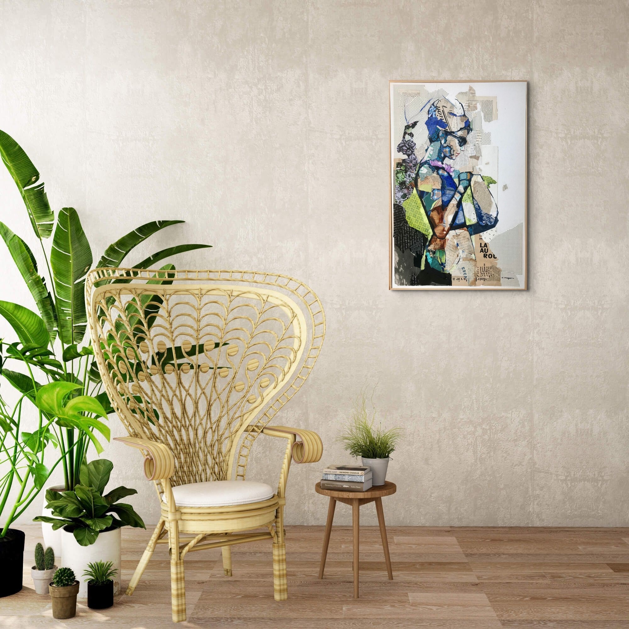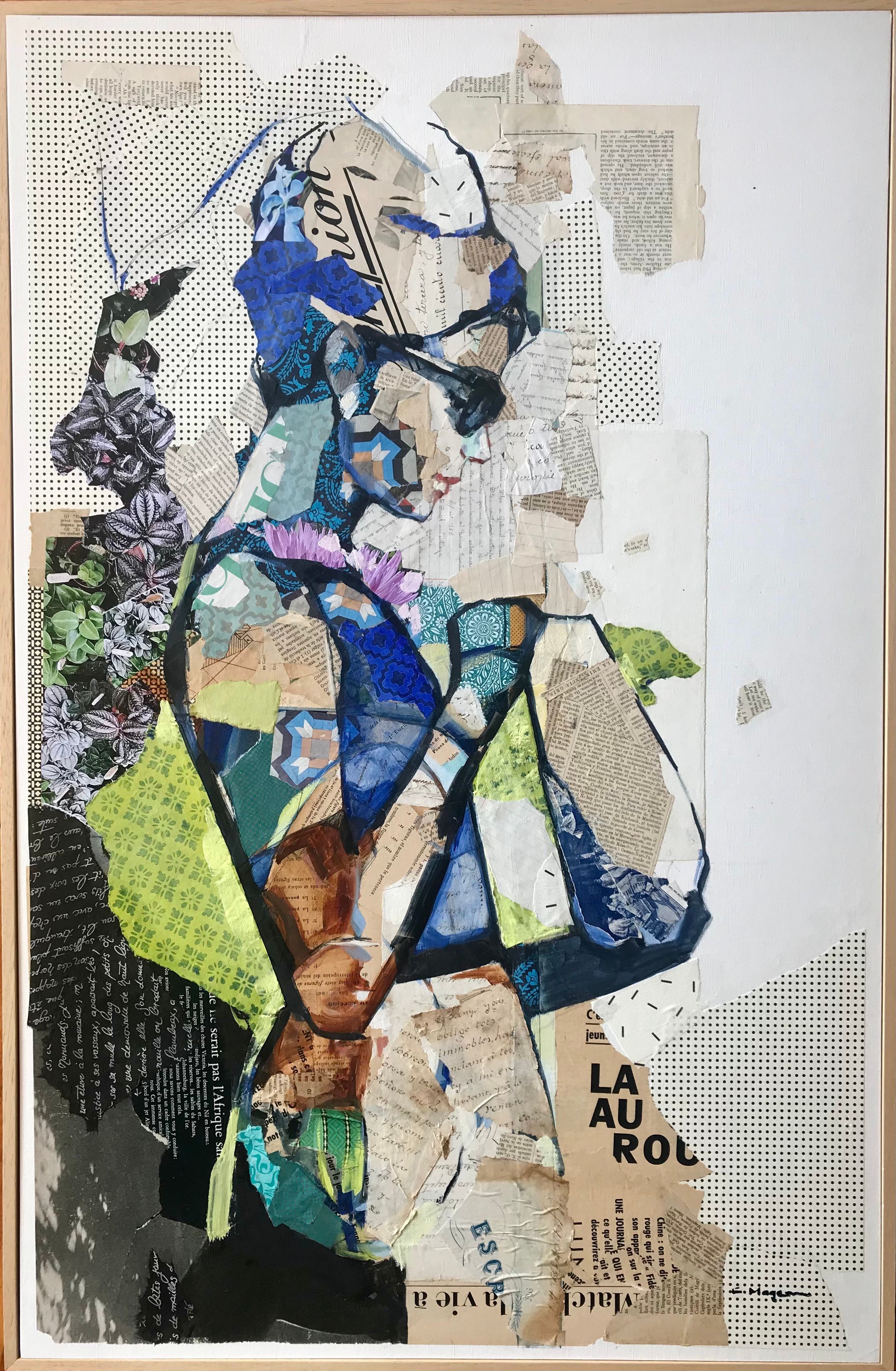 Œuvre originale de Carme Magem, artiste collagiste reconnue pour ses portraits remarquablement expressifs, composés avec des coupures de journaux et des fragment de lettres et d'écrits anciens.