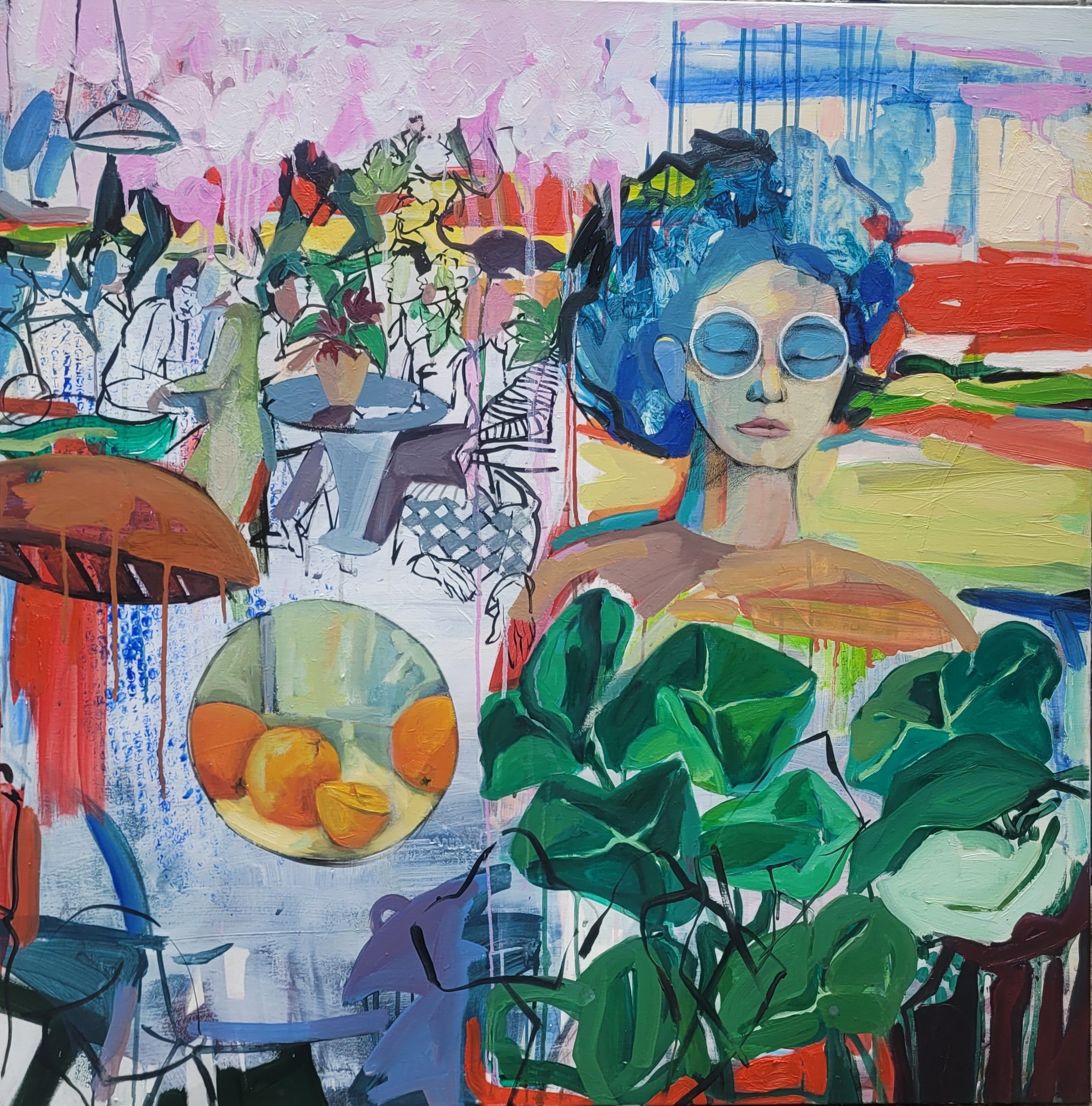 Œuvre originale de l'artiste GOLNAZ AFRAZ, qui se distingue par son style expressif et coloré, mêlant figures féminines, éléments naturels et textures dynamiques. Réalisée avec l'huile et acrylique sur toile, elle explore des thèmes comme l’identité, la liberté et la relation entre l’humain et son environnement.