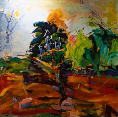 Œuvre originale de l'artiste Bernard CADENE, artiste peintre coloriste confirmée, à l'imaginaire foisonnant dans les entrelacs aux couleurs vives.