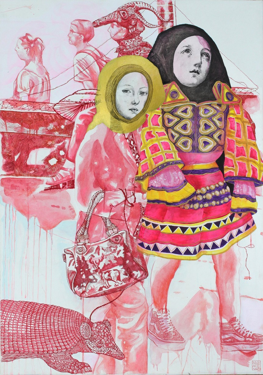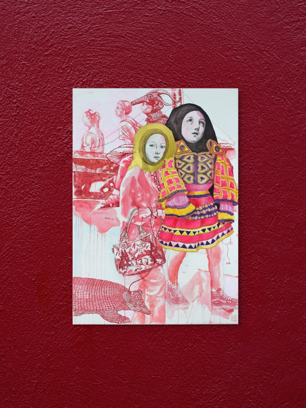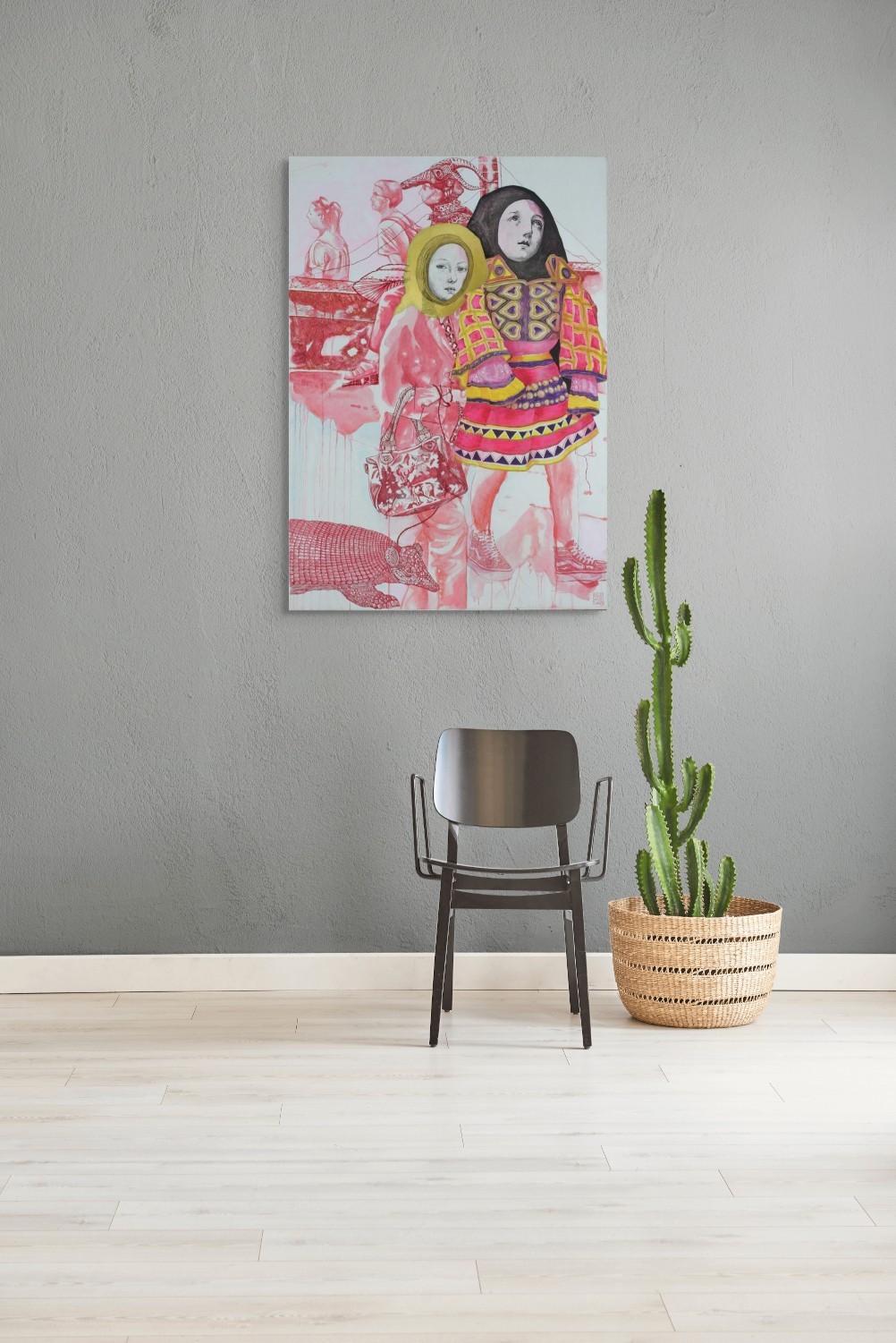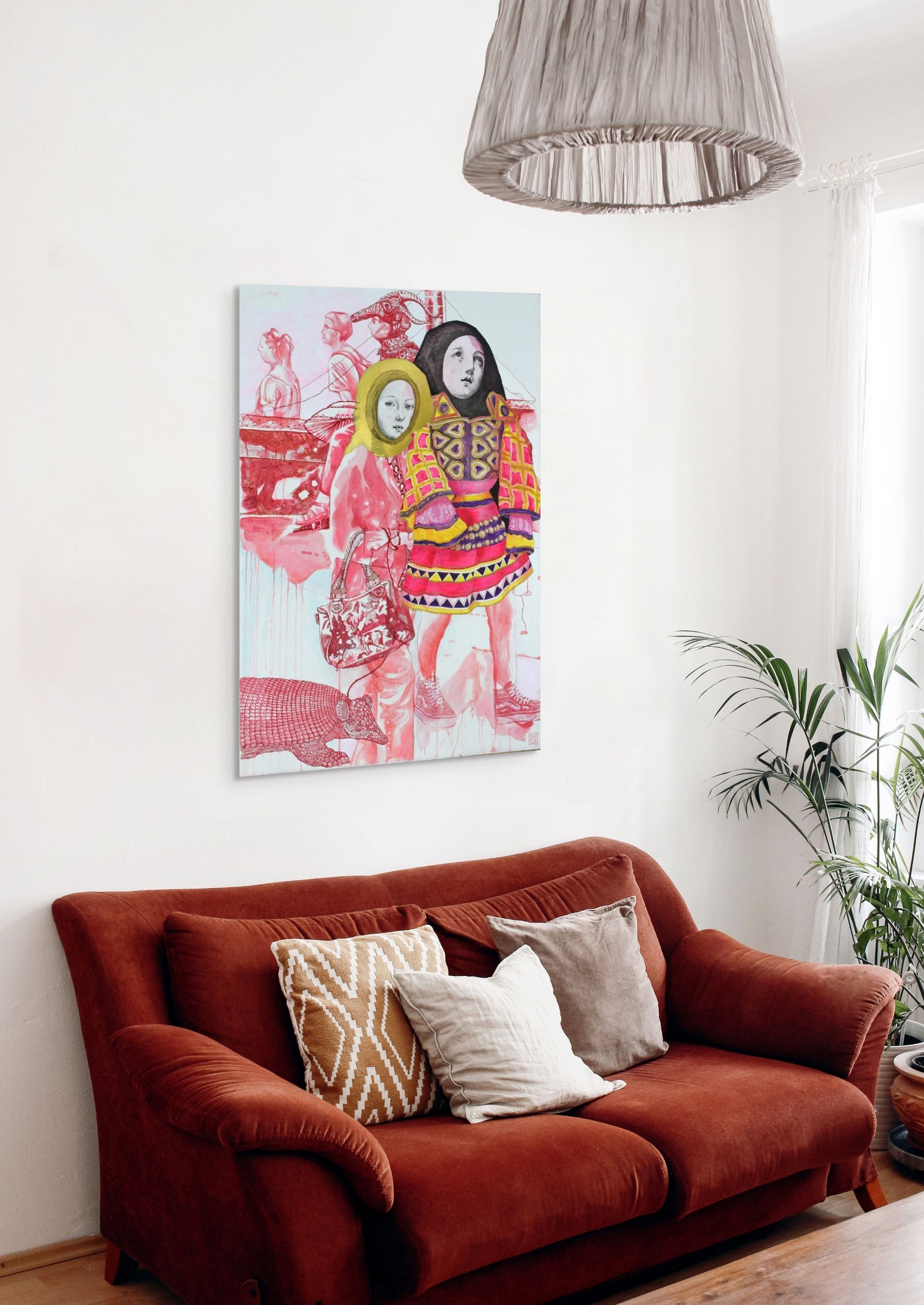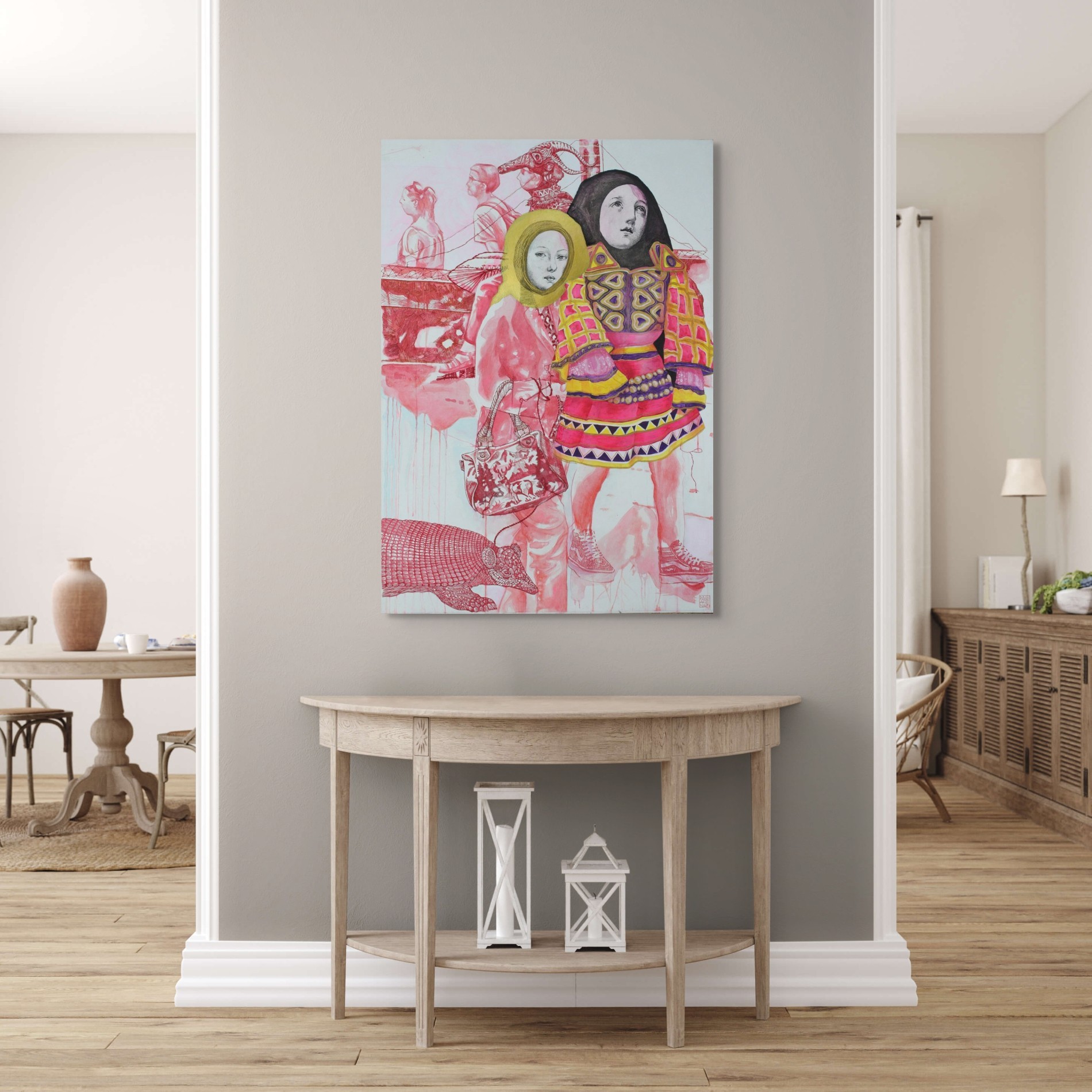 Œuvre originale de l'artiste Elia Pagliarino, tisse un dialogue entre matière et mémoire. Les textures se superposent : la fluidité de l’encre, la densité de l’huile, la finesse de la broderie, créant une œuvre où l’intime et l’universel se rencontrent. Le papier marouflé sur toile donne à la composition une profondeur singulière, comme si chaque couche révélait une part cachée d’une histoire partagée.