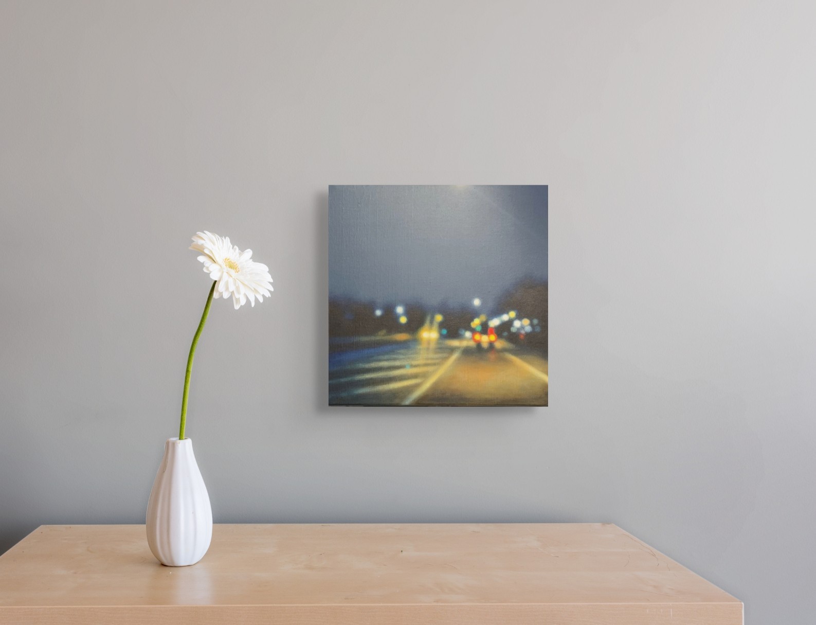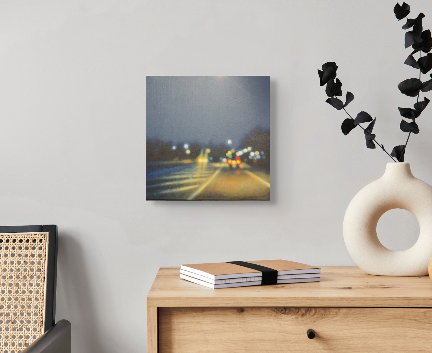 Œuvre originale de l'artiste Laëtitia Giraud, est une plongée dans l’univers urbain de la nuit, où la lumière devient le fil conducteur de l’émotion. Les néons vibrants, les phares éclatants et les reflets sur le bitume créent une atmosphère cinématographique, entre solitude et fascination. Par un jeu subtil de contrastes et de couleurs, cette peinture capte l’essence des paysages nocturnes et invite à une contemplation silencieuse.