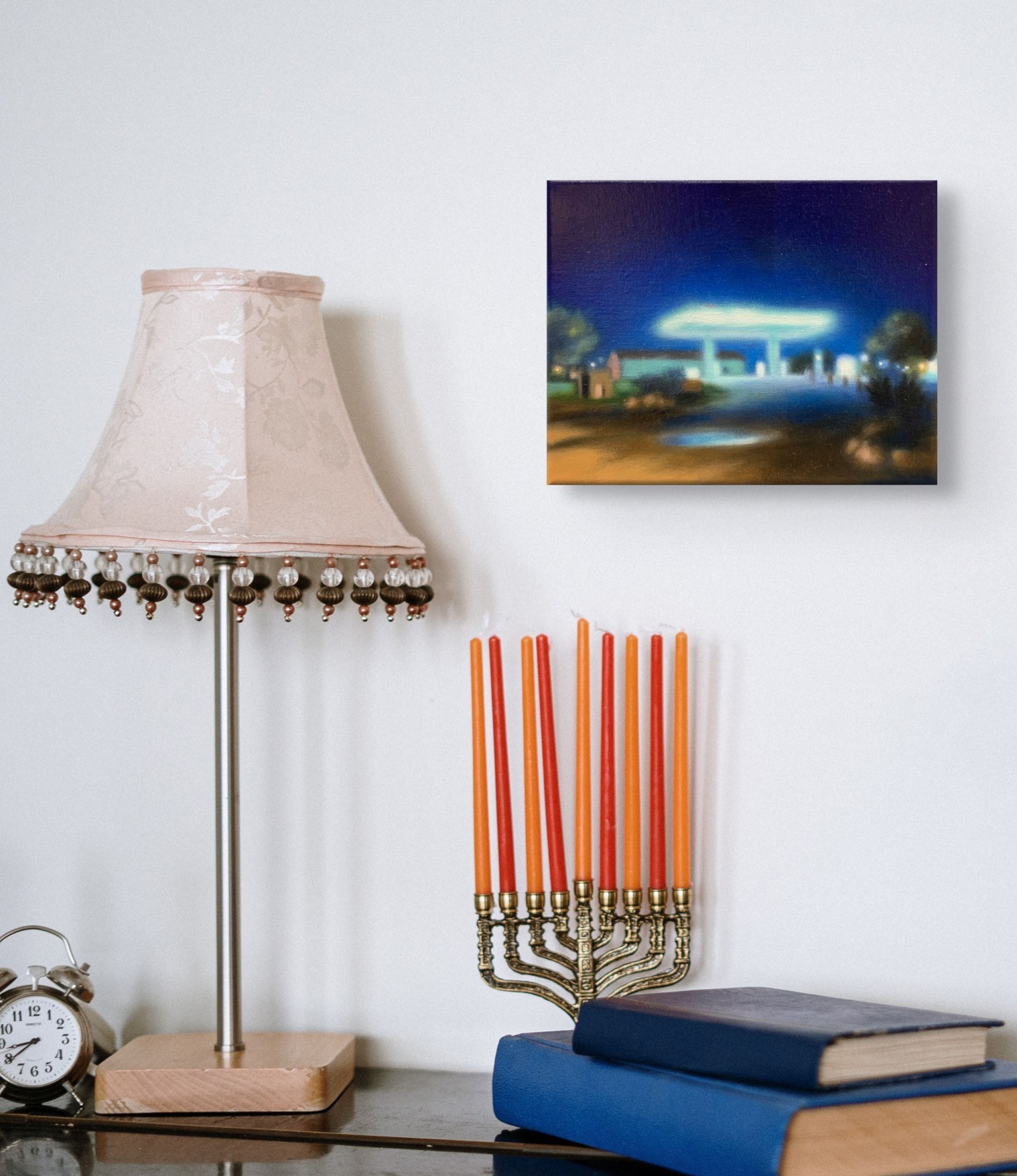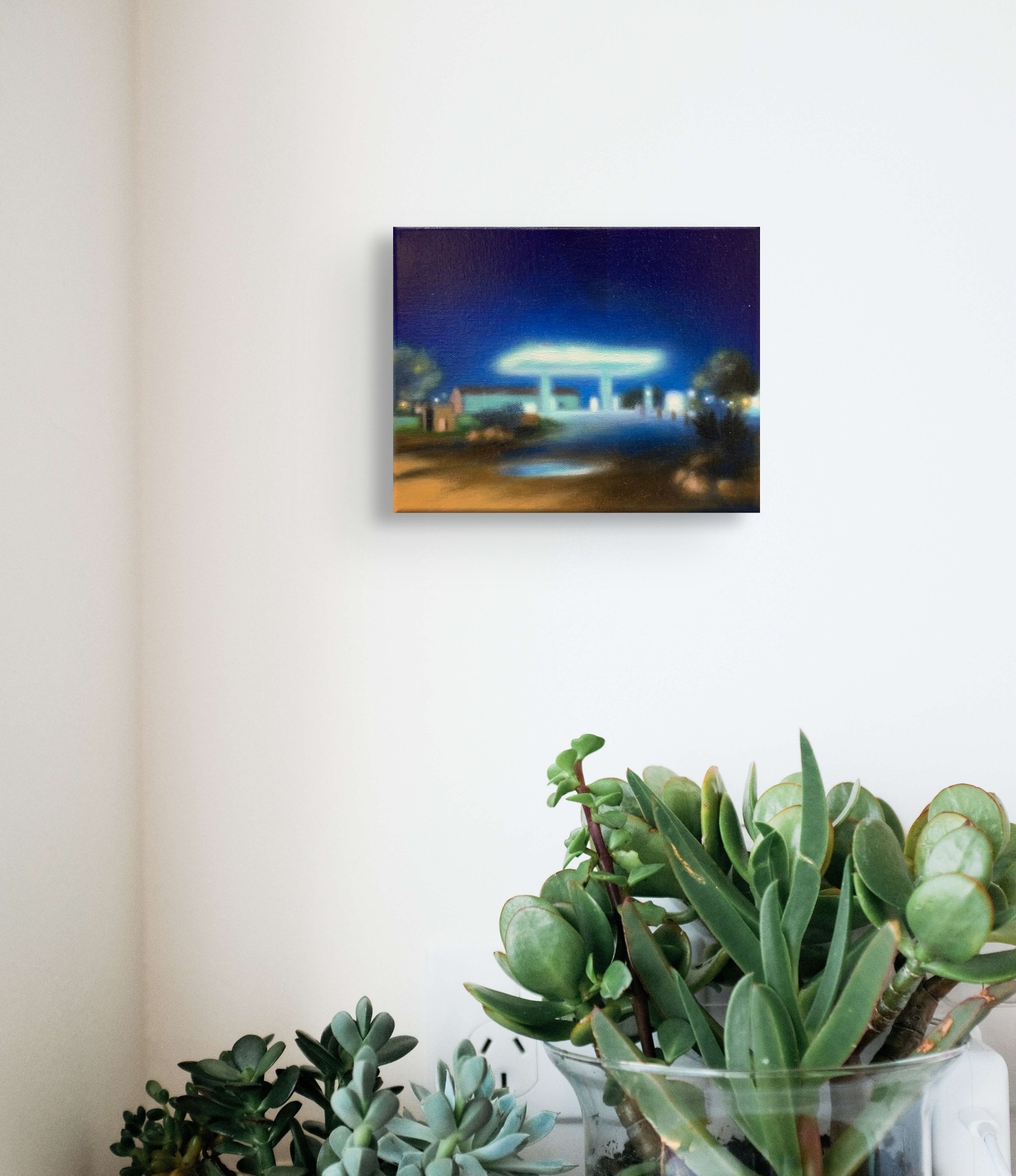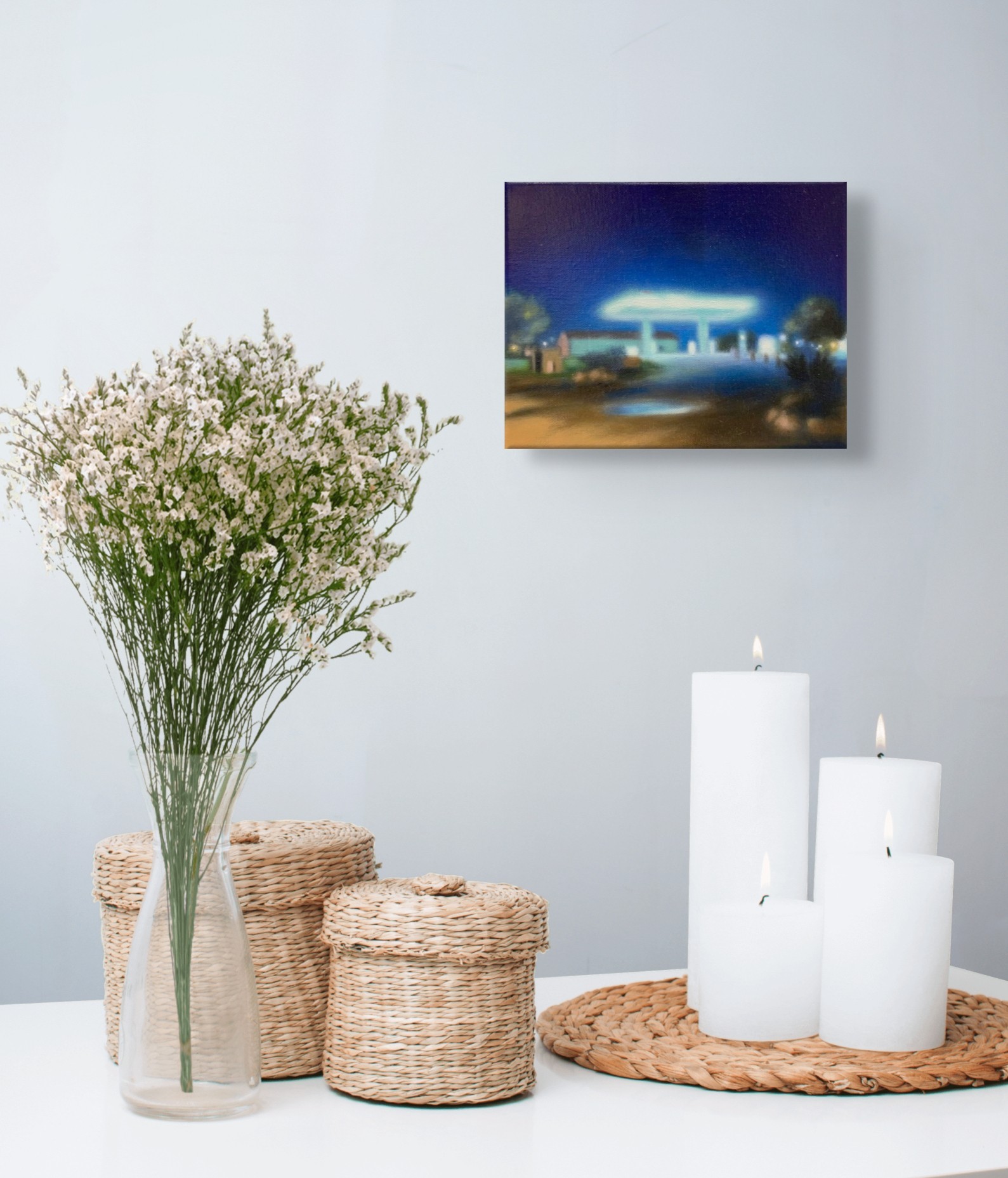 Œuvre originale de l'artiste Laëtitia Giraud, est une plongée dans l’univers urbain de la nuit, où la lumière devient le fil conducteur de l’émotion. Les néons vibrants, les phares éclatants et les reflets sur le bitume créent une atmosphère cinématographique, entre solitude et fascination. Par un jeu subtil de contrastes et de couleurs, cette peinture capte l’essence des paysages nocturnes et invite à une contemplation silencieuse.