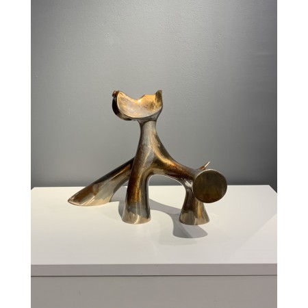 Cette sculpture en bronze originale et unique de l'artiste LOLEK est une œuvre contemporaine et abstraite, représentant un chien. Son design minimaliste et ses courbes dynamiques évoquent à la fois le mouvement et l’élégance, tandis que sa patine lui confère une profondeur artistique unique. Ancrée dans une esthétique moderniste, cette sculpture joue avec les volumes et l’équilibre, illustrant parfaitement le travail de Lolek, un artiste reconnu pour ses créations en bronze aux lignes organiques et raffinées.