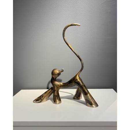 Cette sculpture en bronze originale et unique de l'artiste LOLEK est une œuvre contemporaine et abstraite, représentant un chat. Son design minimaliste et ses courbes dynamiques évoquent à la fois le mouvement et l’élégance, tandis que sa patine lui confère une profondeur artistique unique. Ancrée dans une esthétique moderniste, cette sculpture joue avec les volumes et l’équilibre, illustrant parfaitement le travail de Lolek, un artiste reconnu pour ses créations en bronze aux lignes organiques et raffinées.