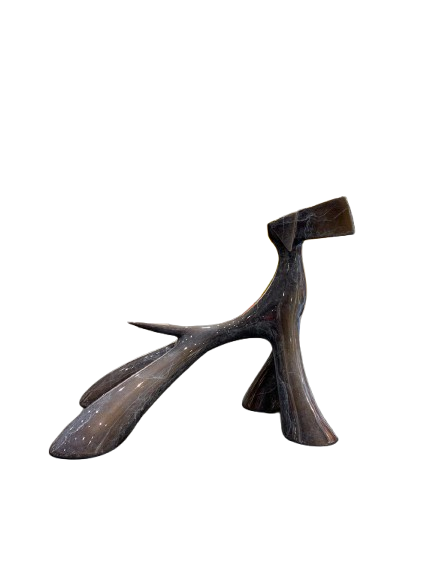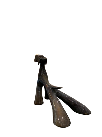 Cette sculpture en bronze originale et unique de l'artiste LOLEK est une œuvre contemporaine et abstraite, représentant un chien. Son design minimaliste et ses courbes dynamiques évoquent à la fois le mouvement et l’élégance, tandis que sa patine lui confère une profondeur artistique unique. Ancrée dans une esthétique moderniste, cette sculpture joue avec les volumes et l’équilibre, illustrant parfaitement le travail de Lolek, un artiste reconnu pour ses créations en bronze aux lignes organiques et raffinées.