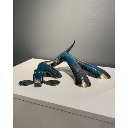 Cette sculpture en bronze originale et unique de l'artiste LOLEK est une œuvre contemporaine et abstraite, représentant un chien. Son design minimaliste et ses courbes dynamiques évoquent à la fois le mouvement et l’élégance, tandis que sa patine lui confère une profondeur artistique unique. Ancrée dans une esthétique moderniste, cette sculpture joue avec les volumes et l’équilibre, illustrant parfaitement le travail de Lolek, un artiste reconnu pour ses créations en bronze aux lignes organiques et raffinées.