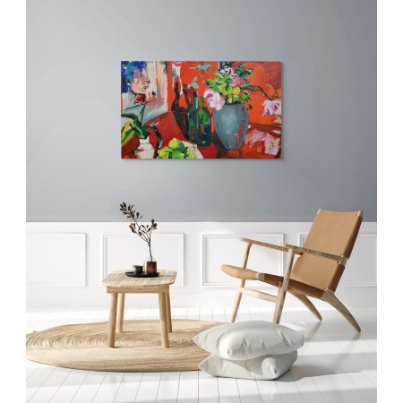 Original artwork by the artist GOLNAZ AFRAZ, known for her expressive and colorful style, blending feminine figures, natural elements, and dynamic textures. Created with oil and acrylic on canvas, it explores themes such as identity, freedom, and the relationship between humans and their environment.