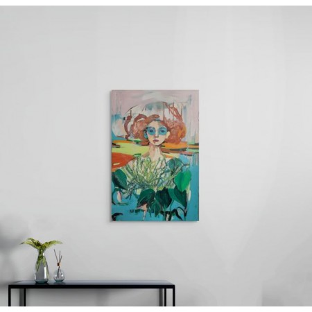 Opera originale dell'artista GOLNAZ AFRAZ, che esplora i temi della vita quotidiana e della condizione femminile.