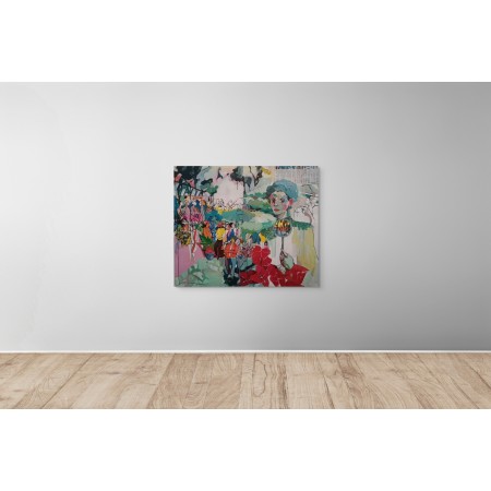 Opera originale dell'artista GOLNAZ AFRAZ, che esplora i temi della vita quotidiana e della condizione femminile.