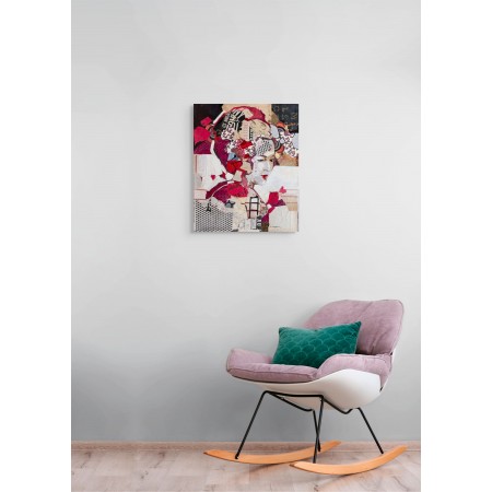 Origineel kunstwerk van Carme Magem, collagist bekend om zijn opmerkelijk expressieve portretten, samengesteld met krantenknipsels en fragmenten van oude brieven en geschriften.