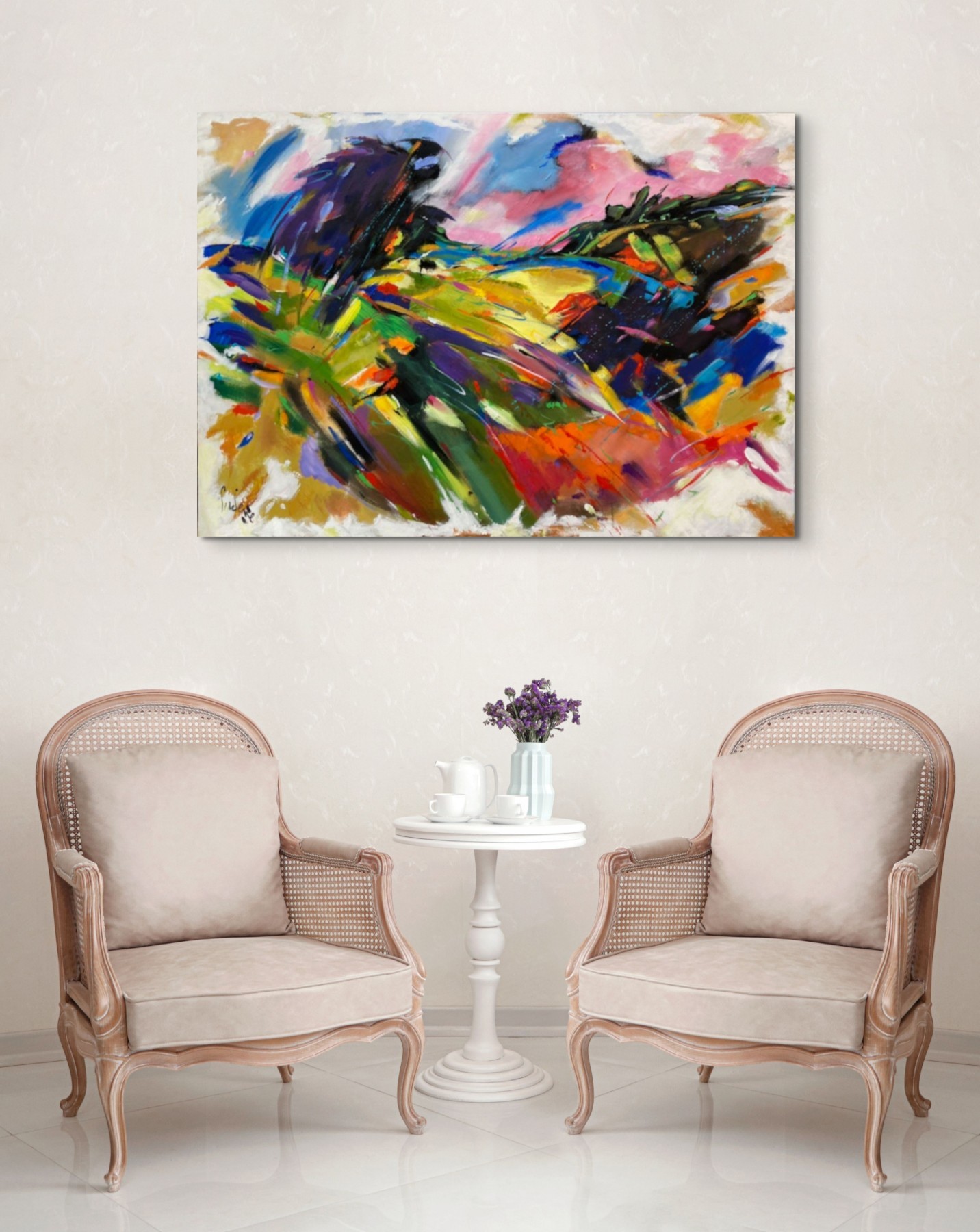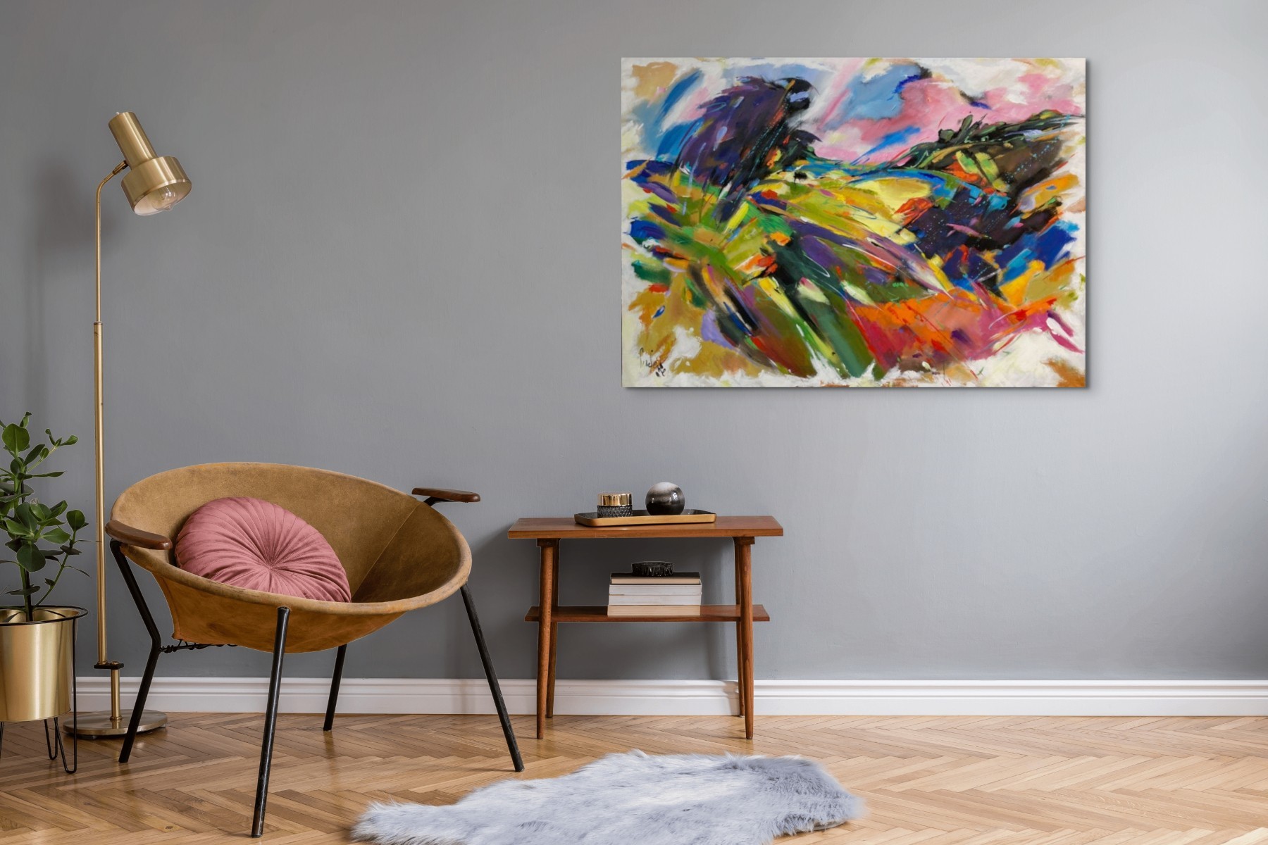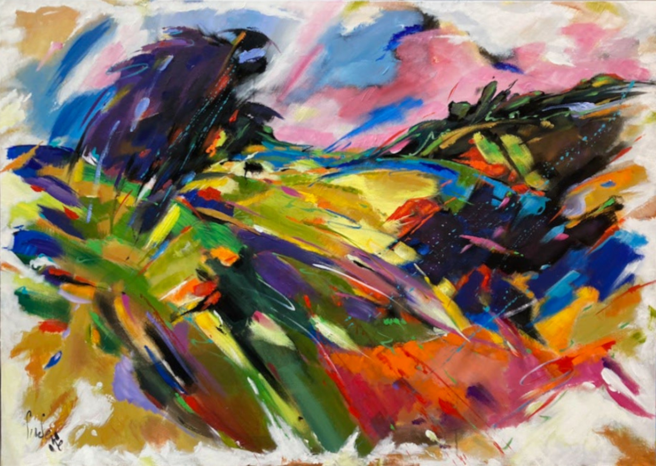 Origineel kunstwerk van kunstenaar Bernard CADENE, bevestigd coloristisch schilder, met een overvloed aan verbeeldingskracht in de felgekleurde interliniëring.