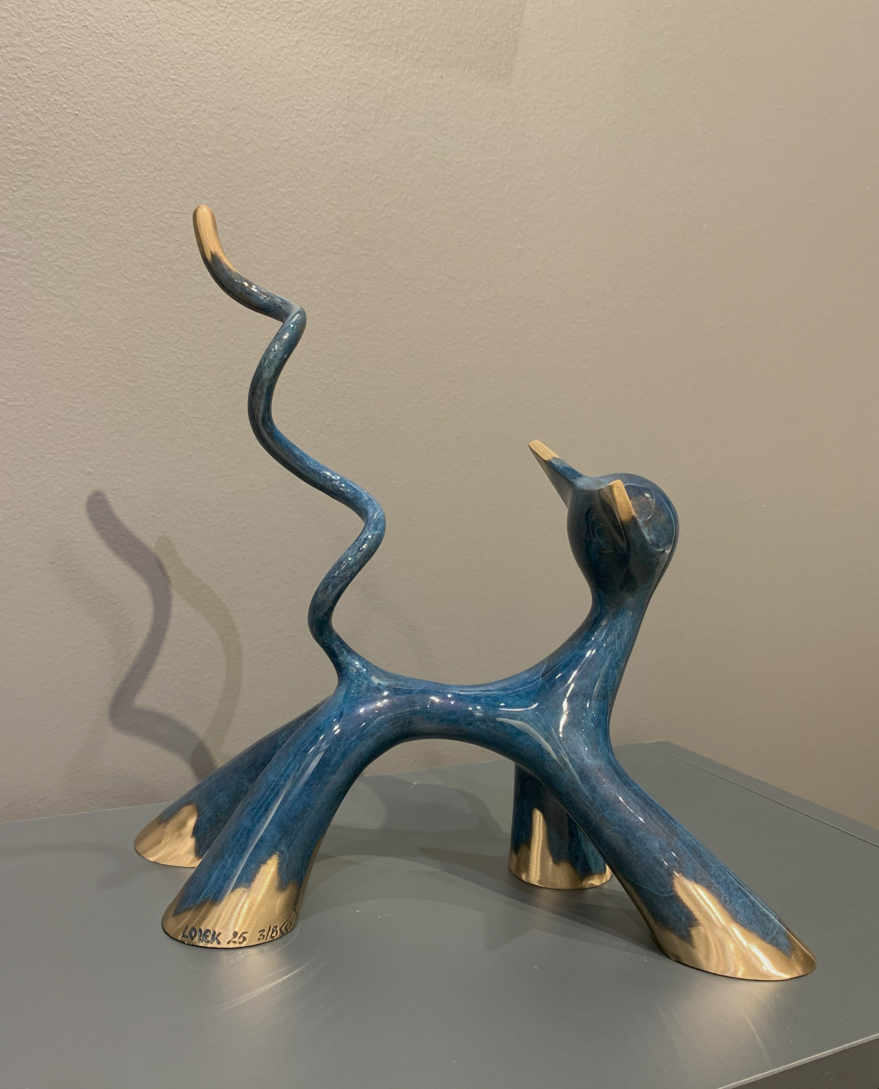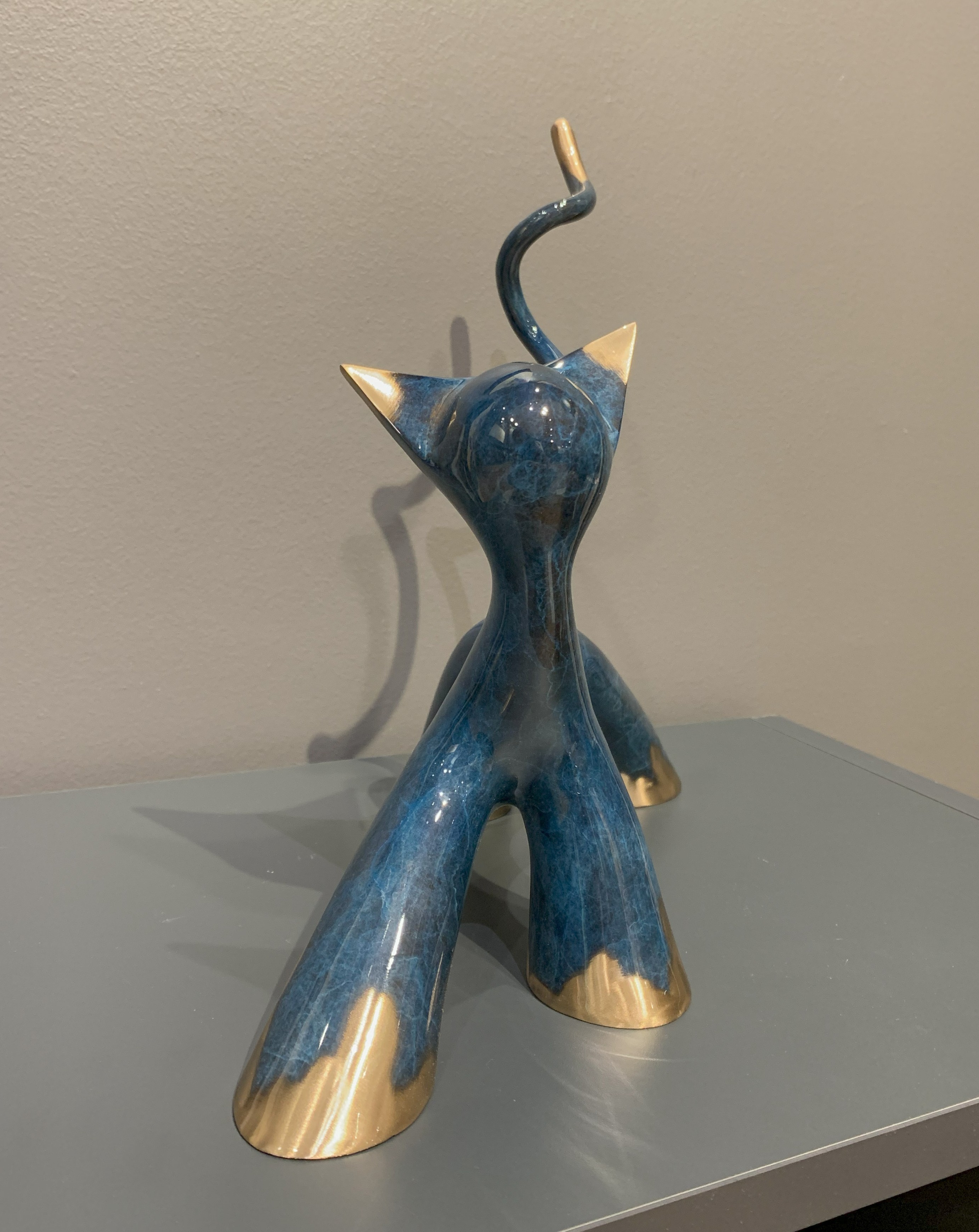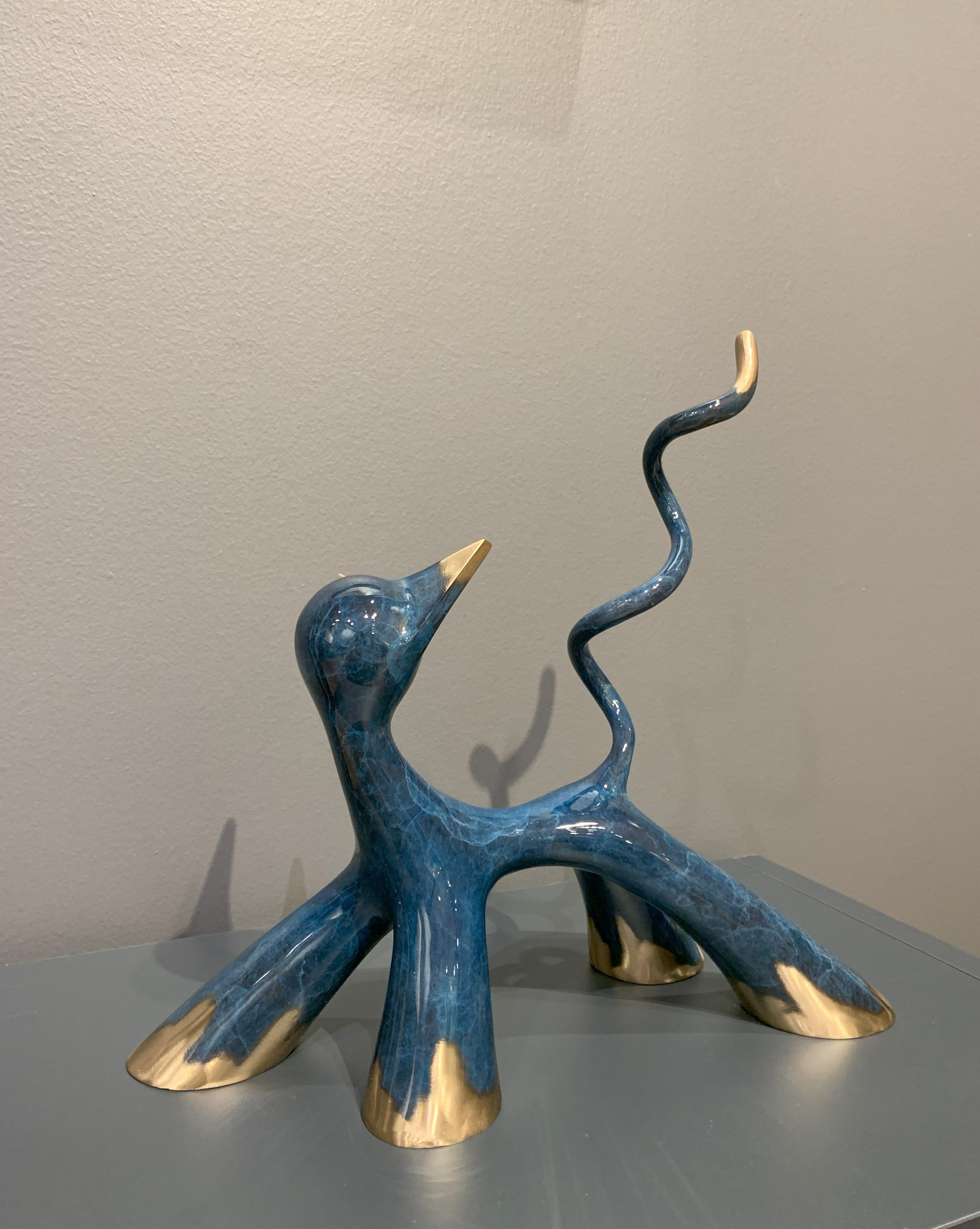 Sculptuur in geborsteld blauw brons.