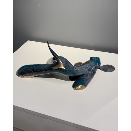Sculptuur in gemarmerd grijs en kobaltblauw brons.
